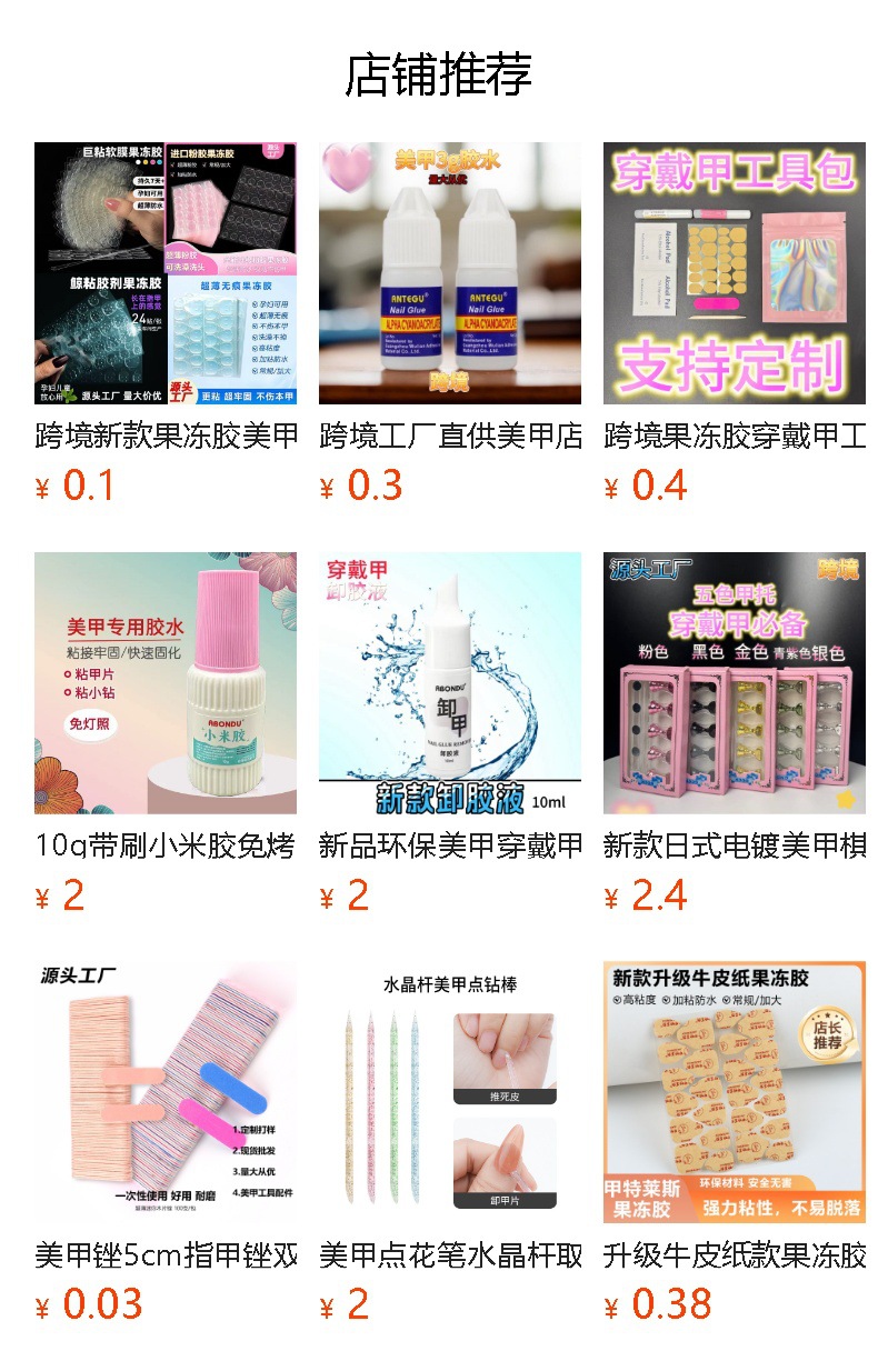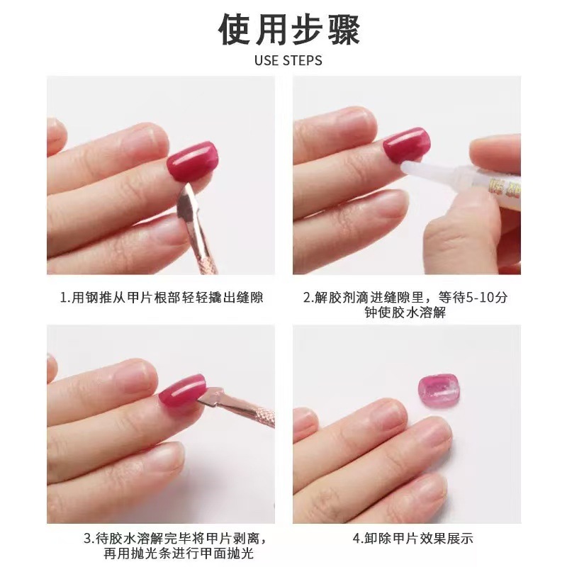 Нанесите лак для ногтей, клей 2 г.; Наденьте броню Клей 2г (10 штук в упаковке); Средство для снятия лака для ногтей, 2 г; Средство для снятия лака для ногтей, 2 г (упаковка из 10 штук)