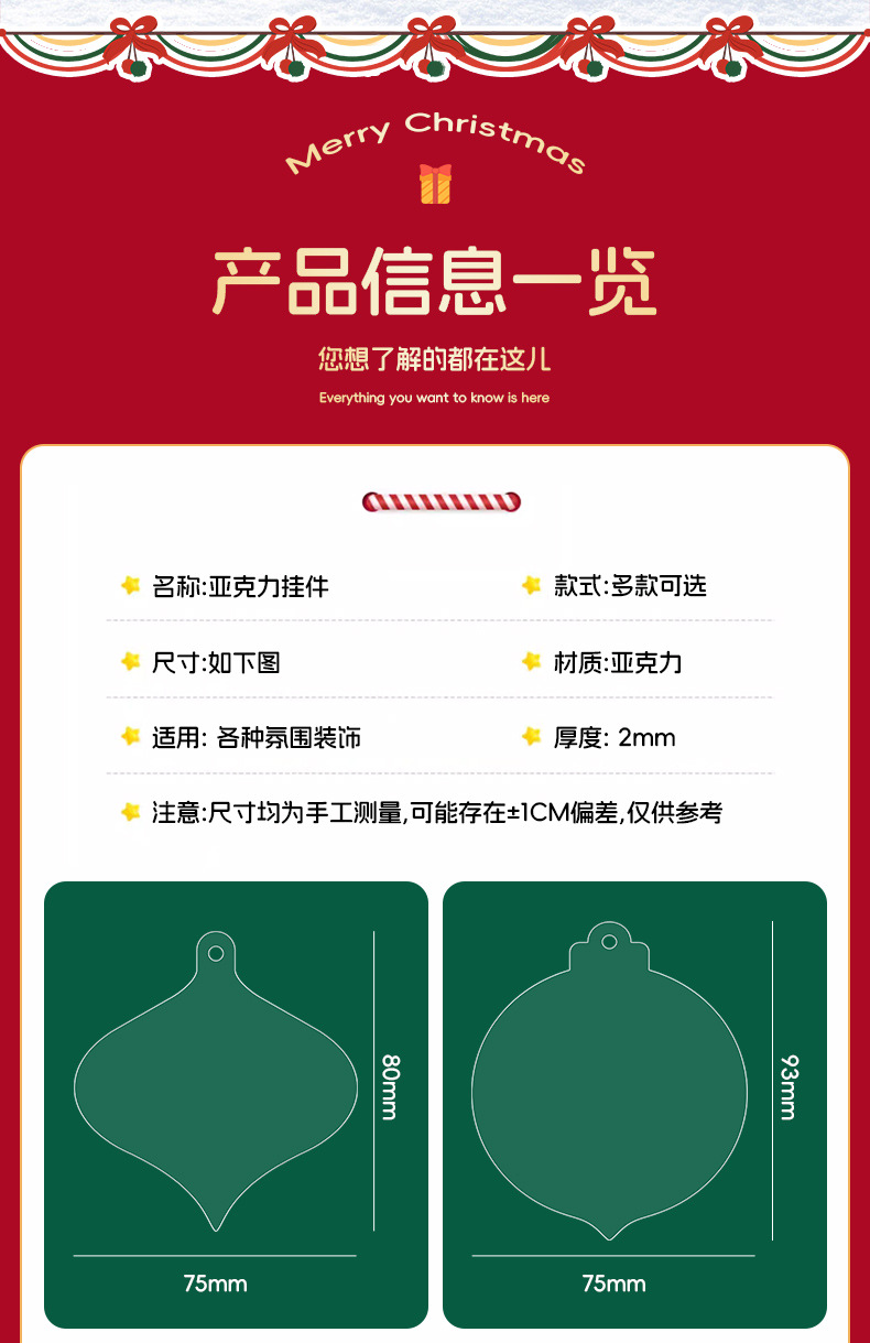 Заготовка для рождественского украшения из акрила, индивидуальный дизайн, для трансграничной торговли, подвеска для елки