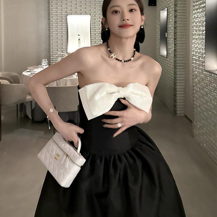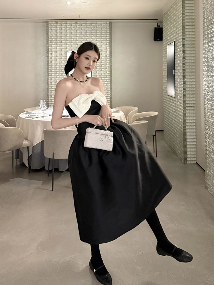 Праздничное платье для выпускного, дня рождения, помолвки, белое с бантом, без бретелек, облегающее, для выпускного вечера