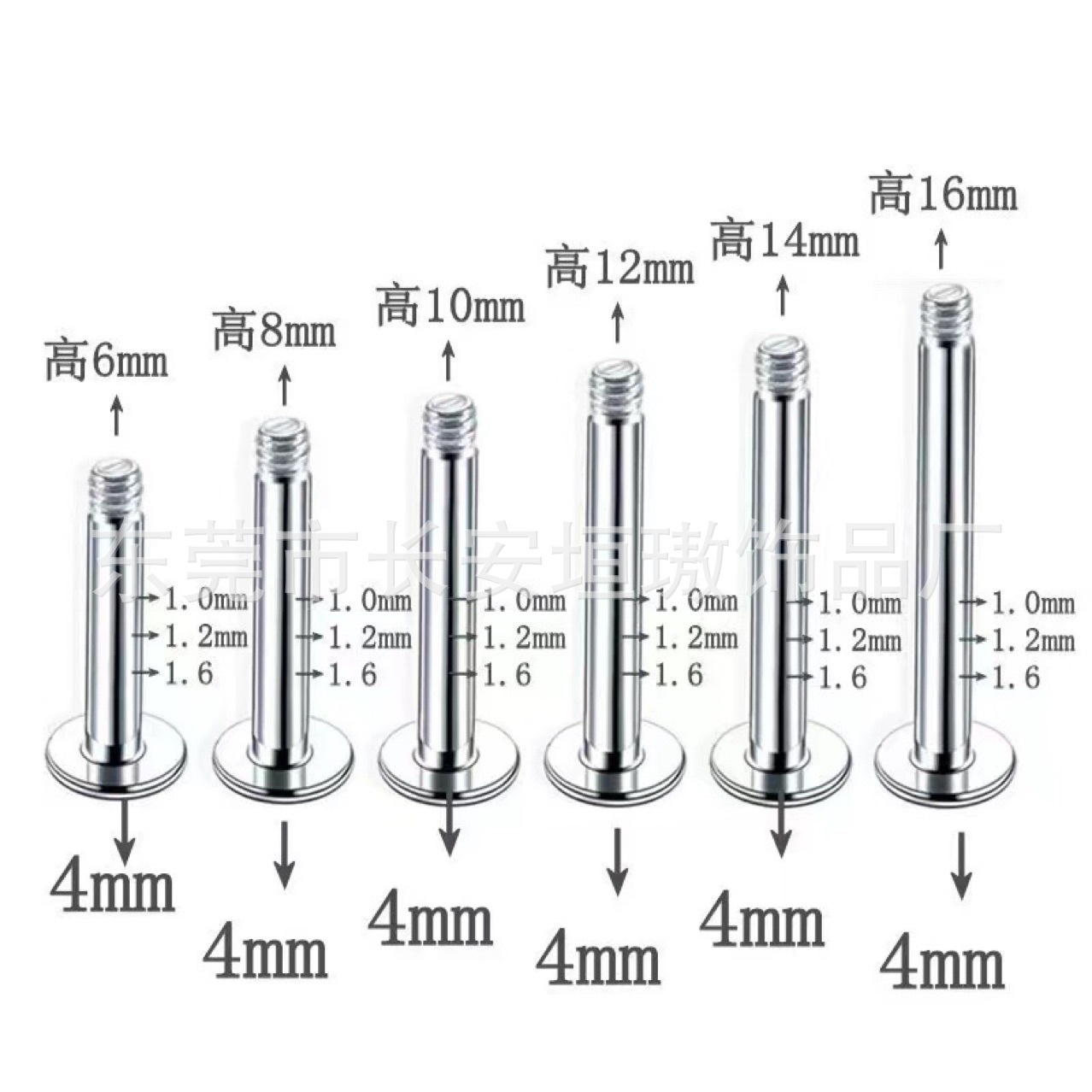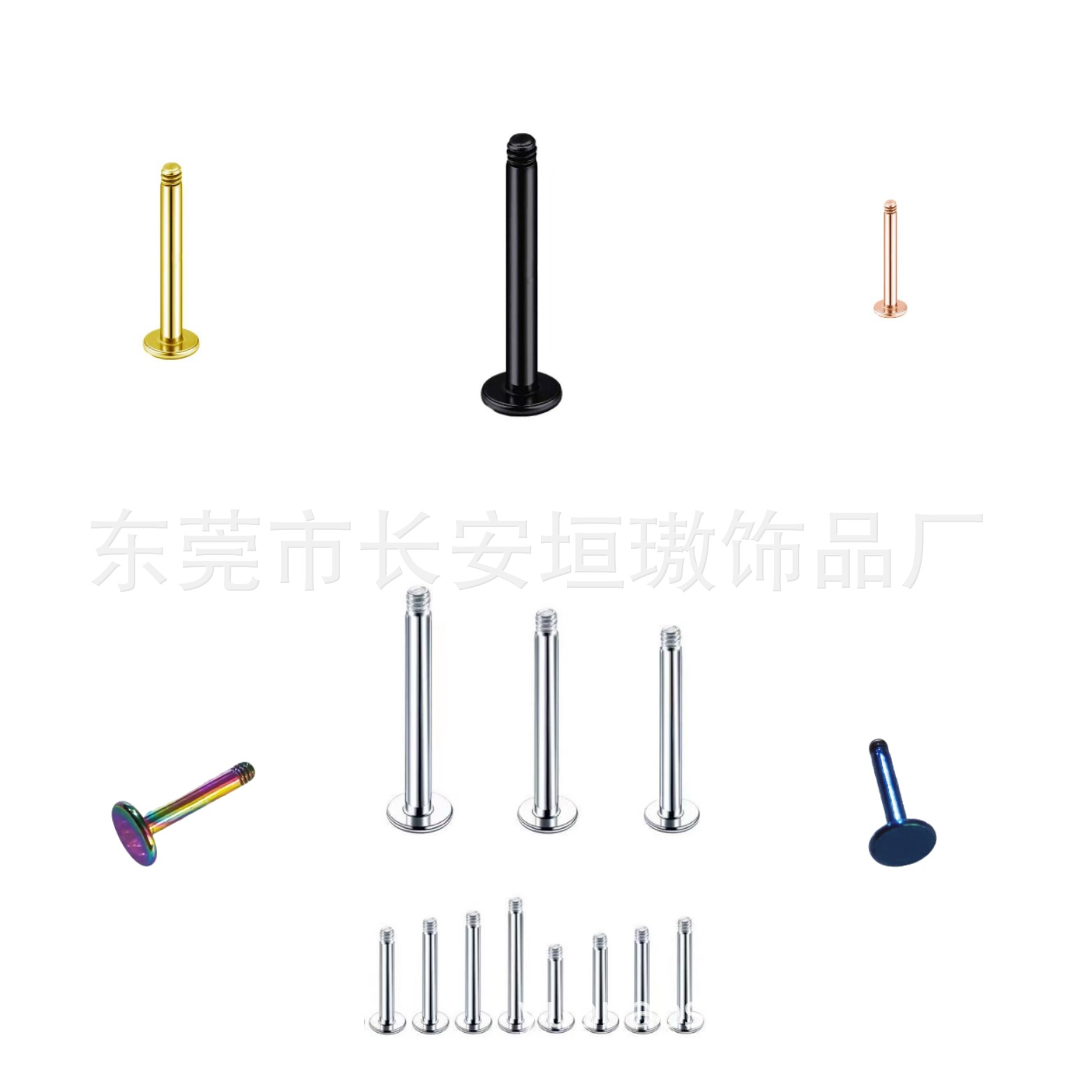 Нержавеющая сталь, внешняя резьба, губчатый штифт, плоское дно, аксессуары для пирсинга тела