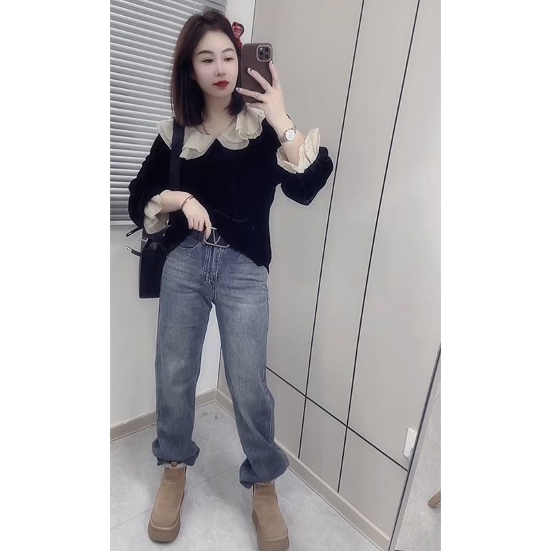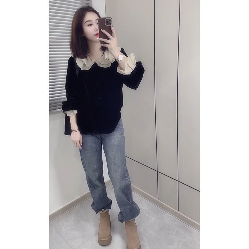 Базовая рубашка весна 2024, рубашка-бэбидолл во французском стиле Chanel, свободная и удобная, элегантный топ с длинными рукавами, подчеркивающий изысканный характер.