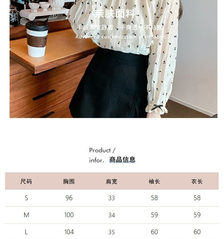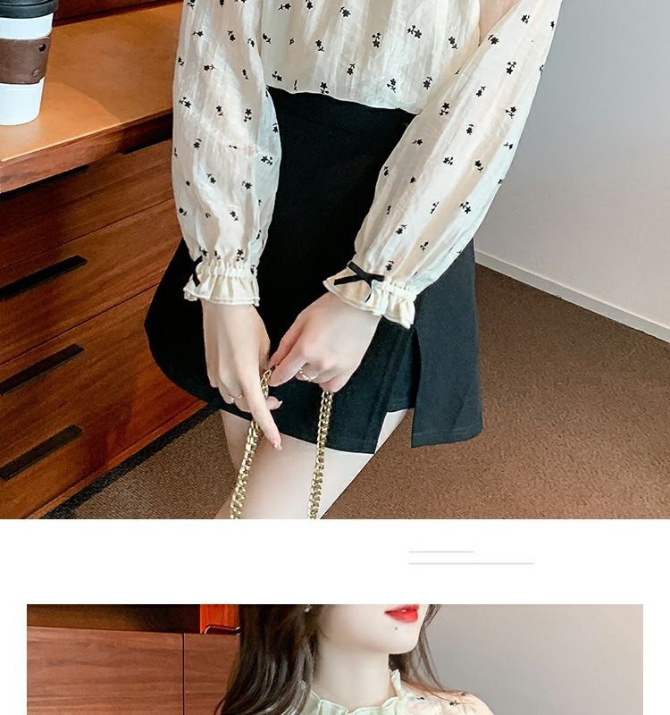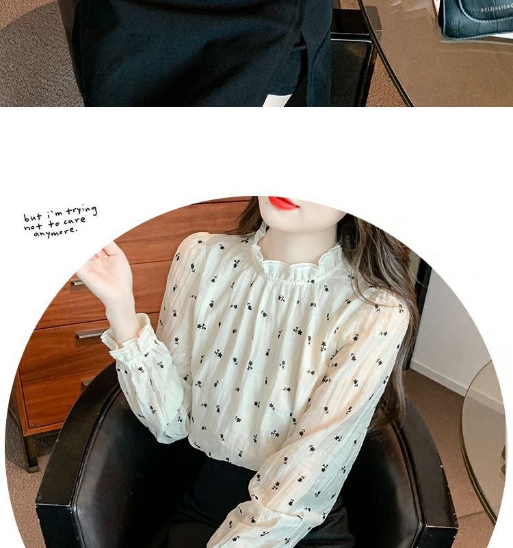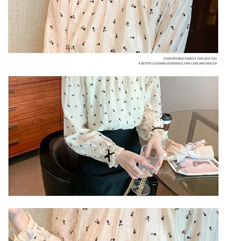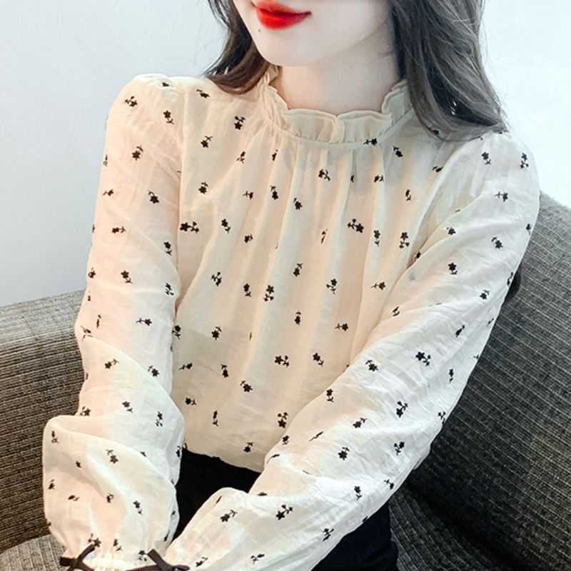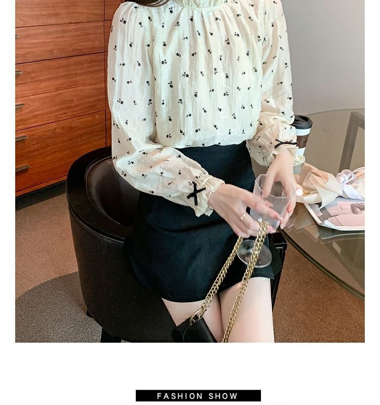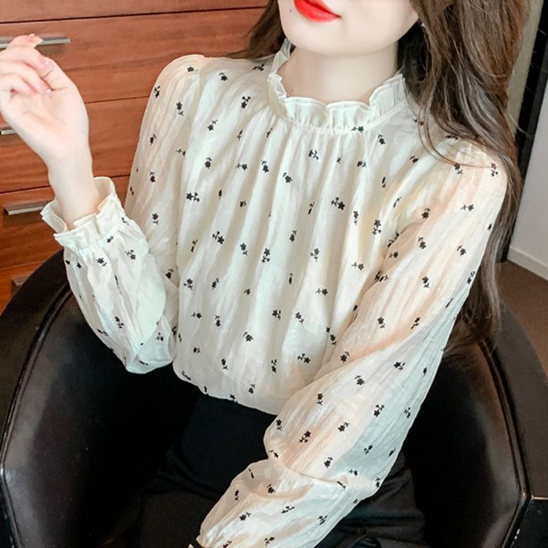 Весенне-осенняя женская рубашка во французском стиле, приталенная, с цветочным принтом, с воротником-стойкой, универсальная, с длинным рукавом, элегантная.