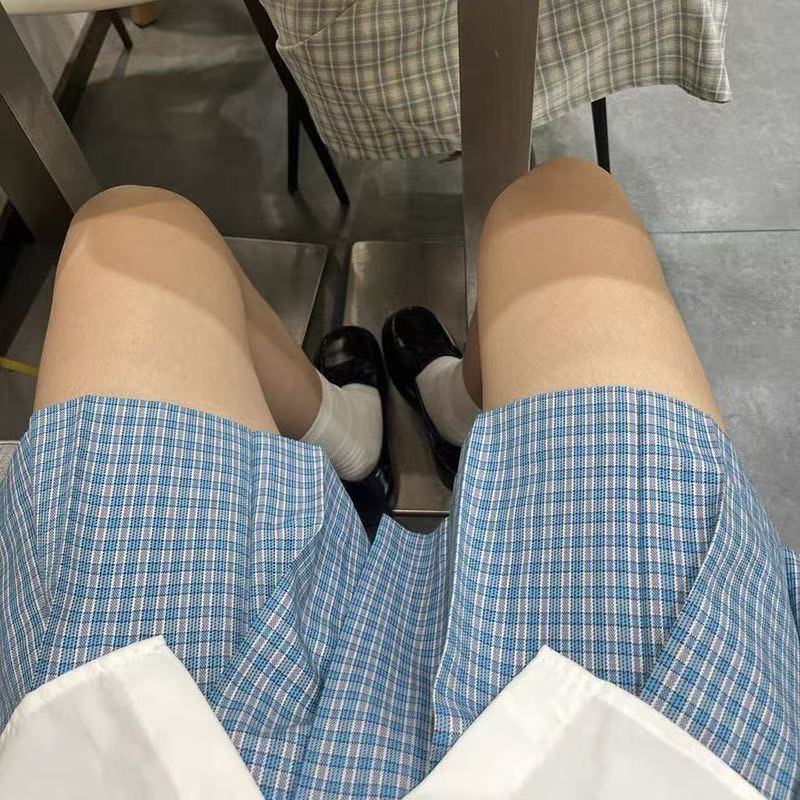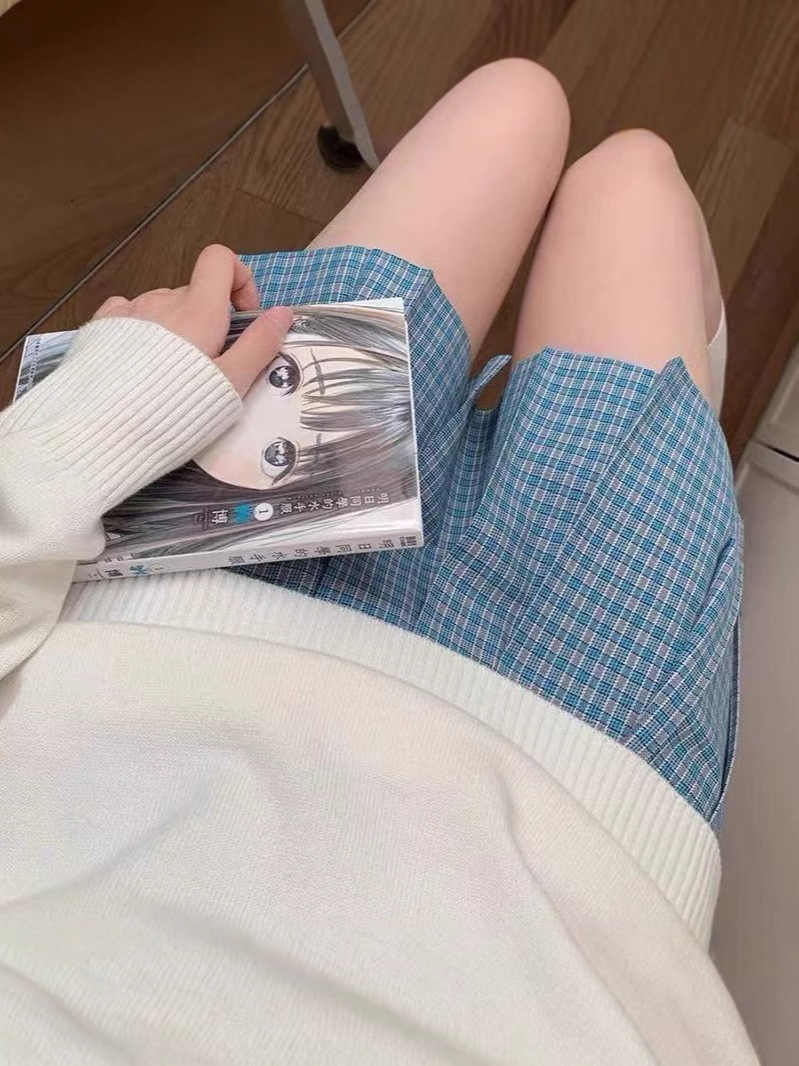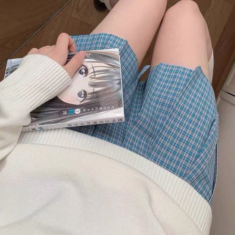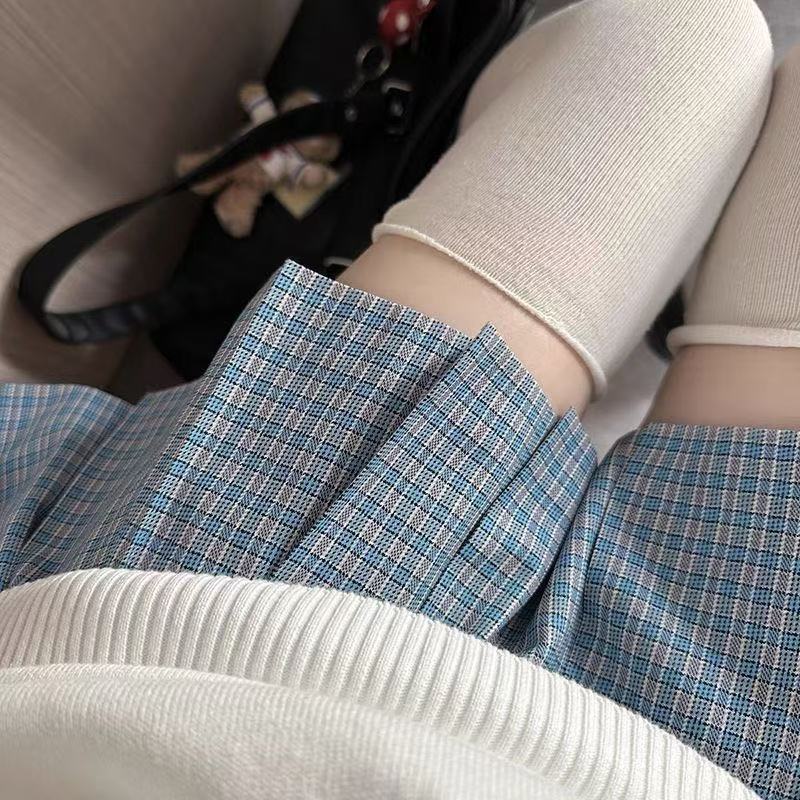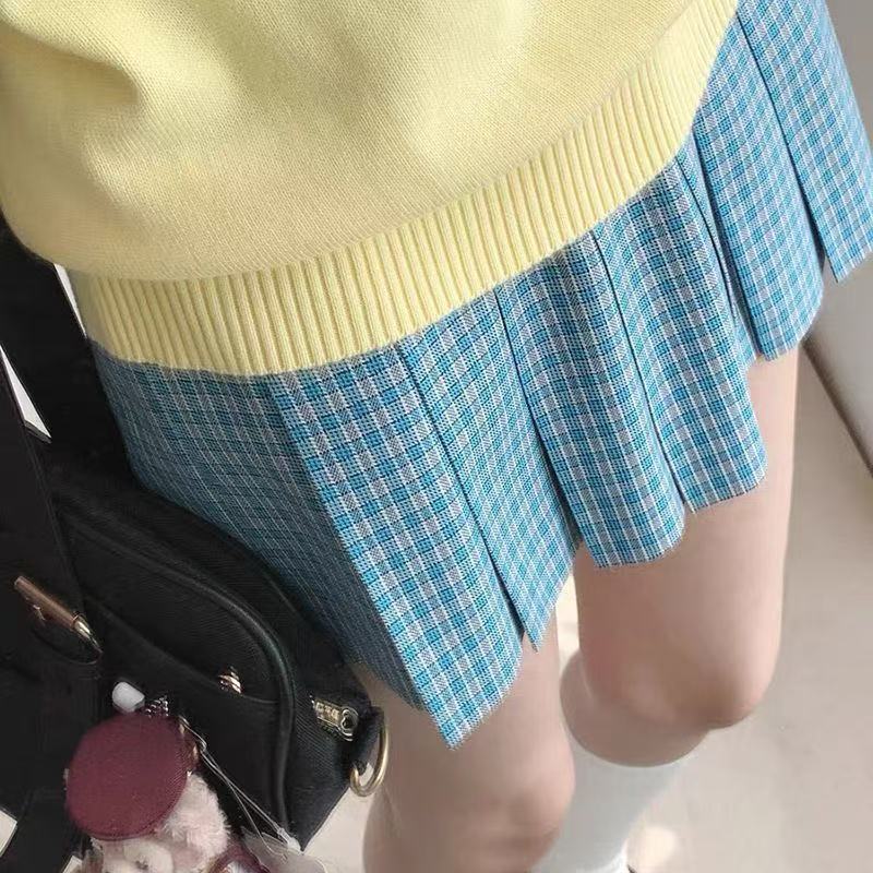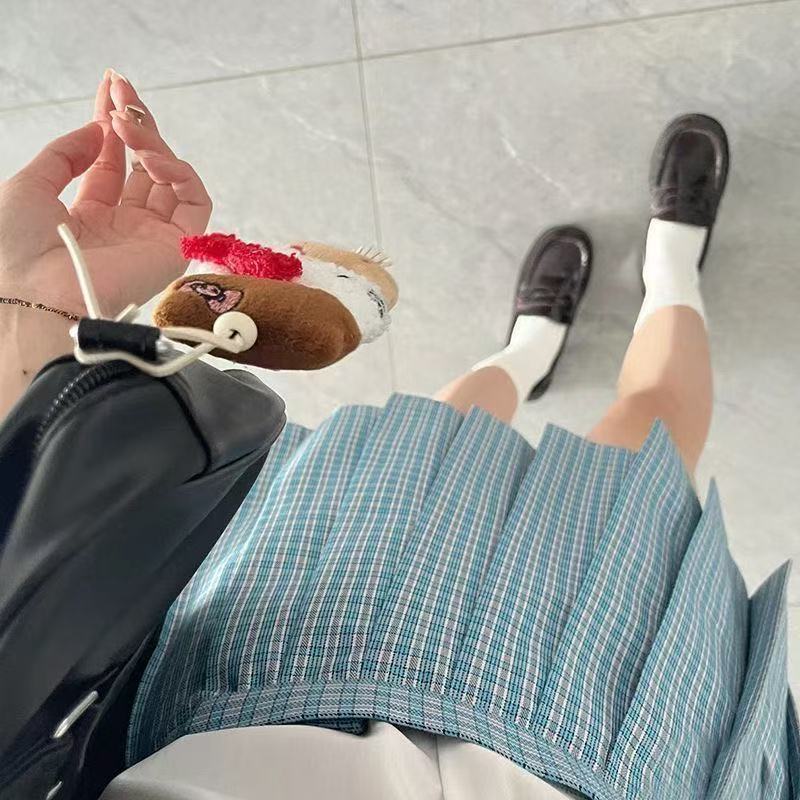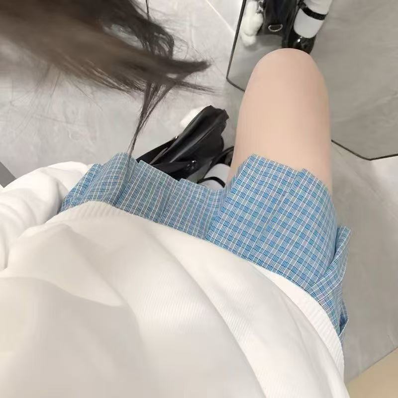 Небесно-голубая юбка в стиле JK, юбка в аквамариновую клетку, японская плиссированная юбка с высокой талией для женщин, весна-лето, с высокой талией и эффектом стройности.