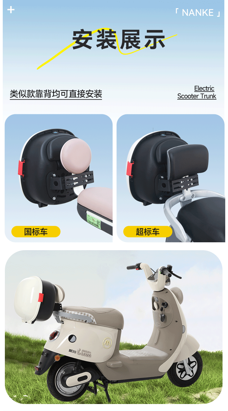 Спинка сиденья электроскутера (трайка) с багажником подходит для Yadea, Aima и Ninebot, обладает высоким эстетическим качеством и милым дизайном, служит как задний отсек для хранения.