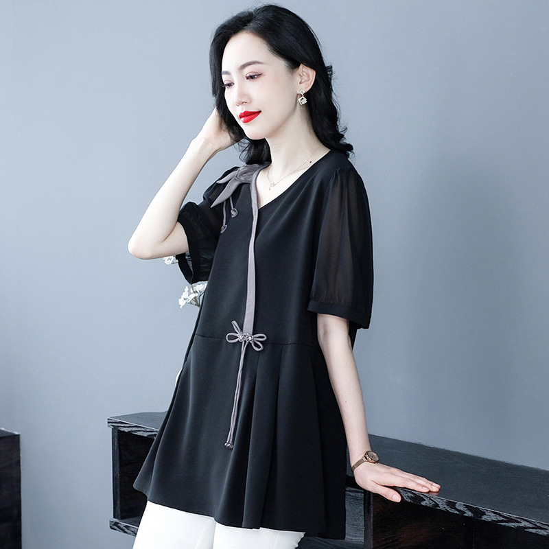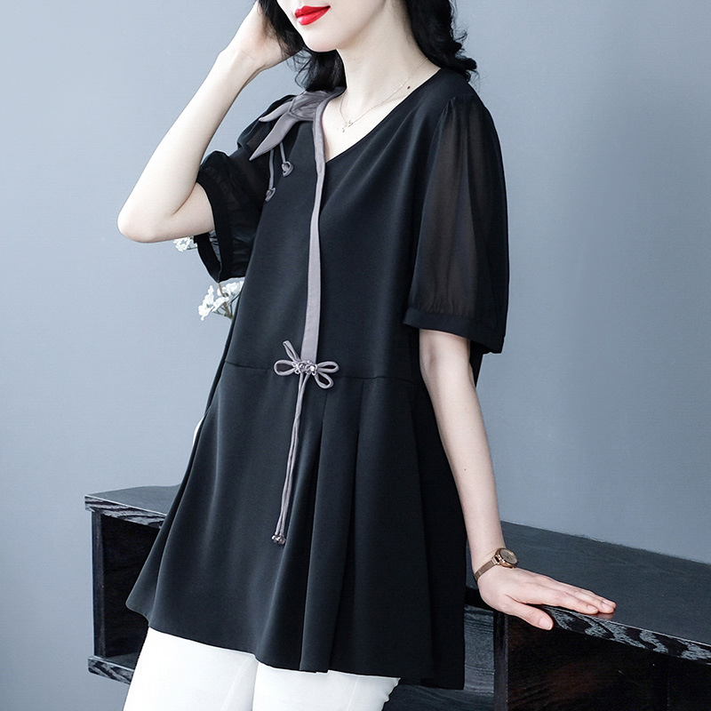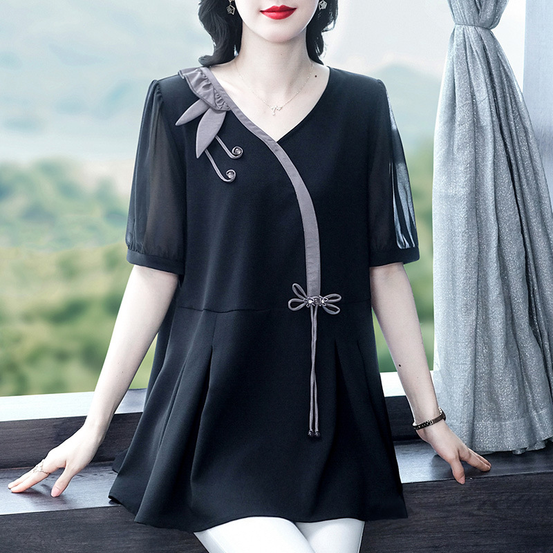 Летняя новая мода ретро свободный большой размер тонкая 30-летняя мама повседневная маленькая рубашка топ толстая женская одежда