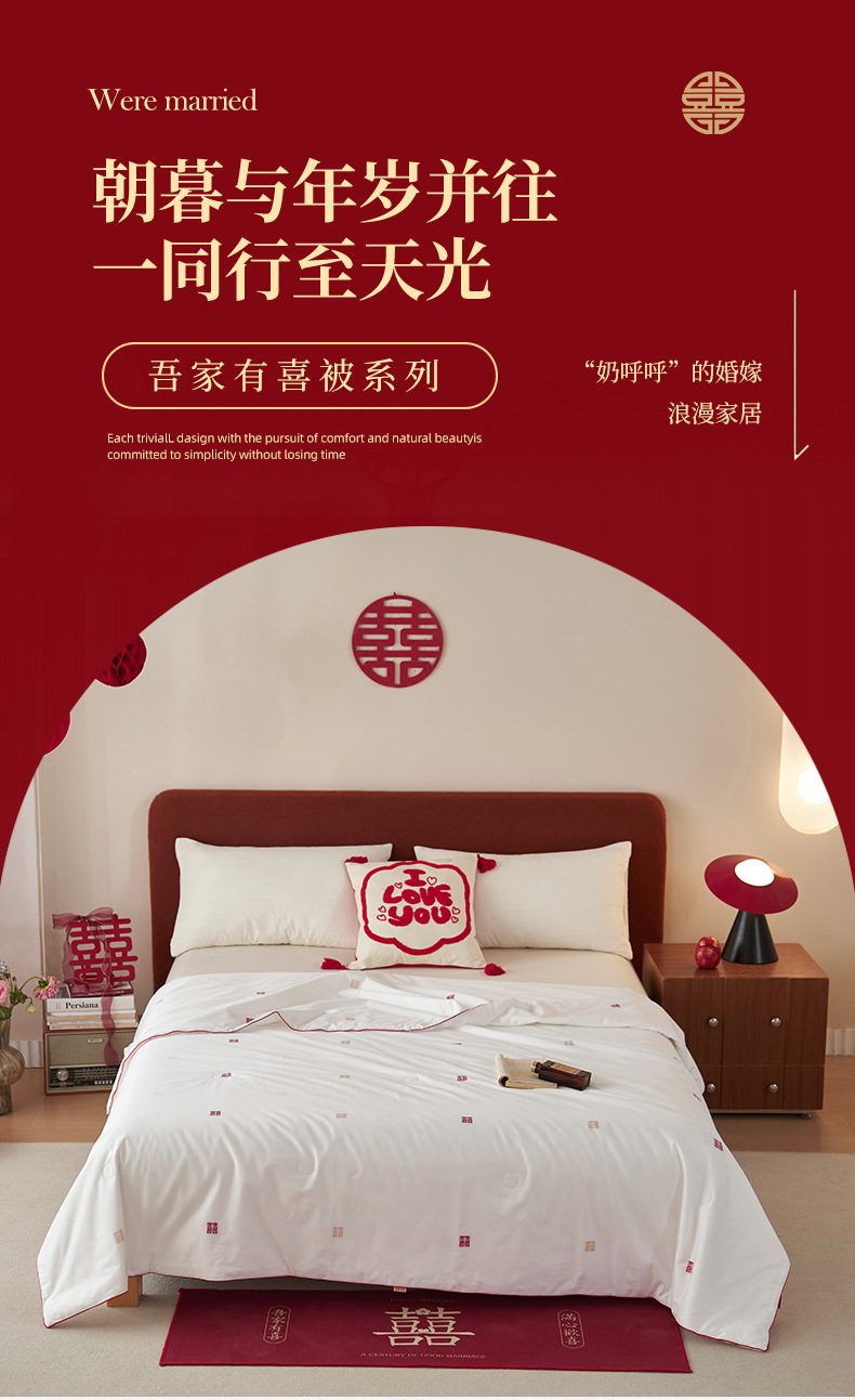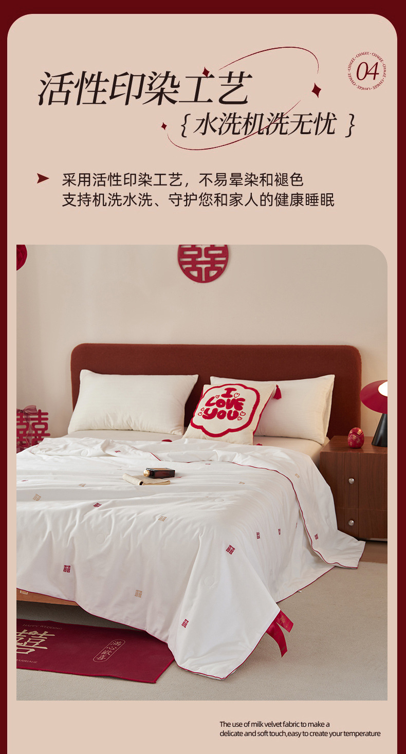 Красное одеяло для свадебного торжества, полностью хлопковое летнее охлаждающее одеяло, стеганое одеяло с кондиционером, двуспальное одеяло из длинноволокнистого хлопка для свадебной приданой.