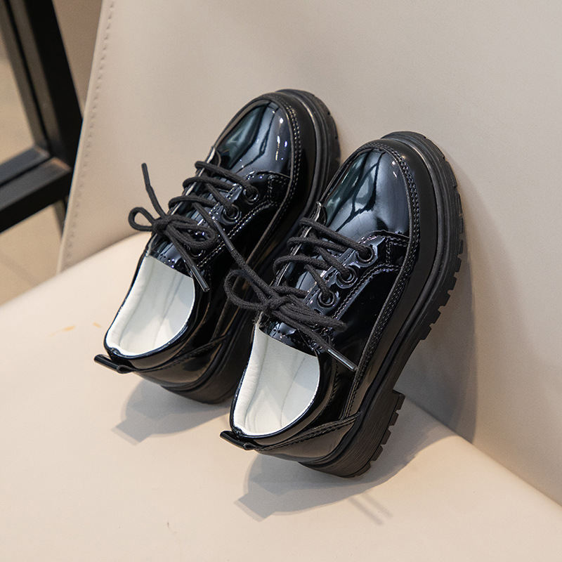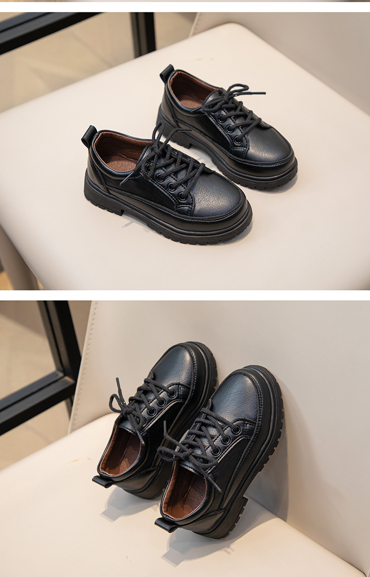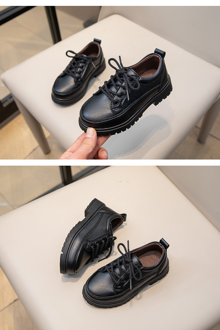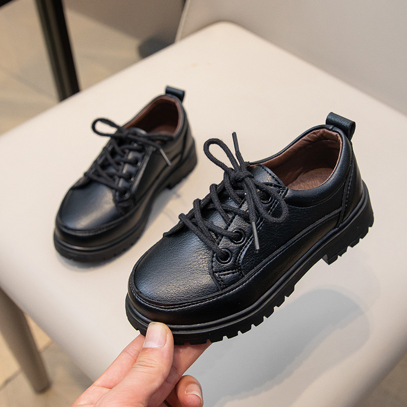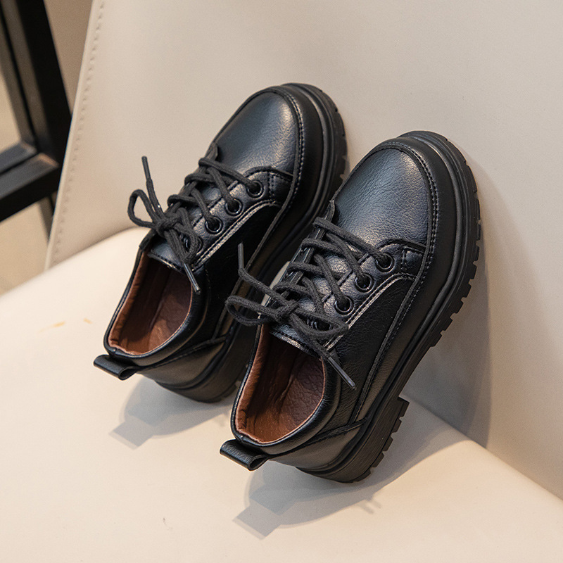 Весенне-осенние новые повседневные черные кожаные туфли на шнуровке для кампуса, матовые дышащие британские удобные кожаные туфли для маленьких и средних мальчиков