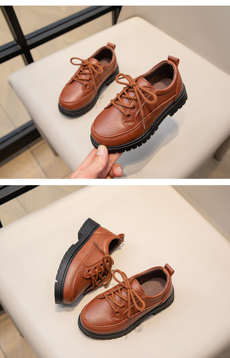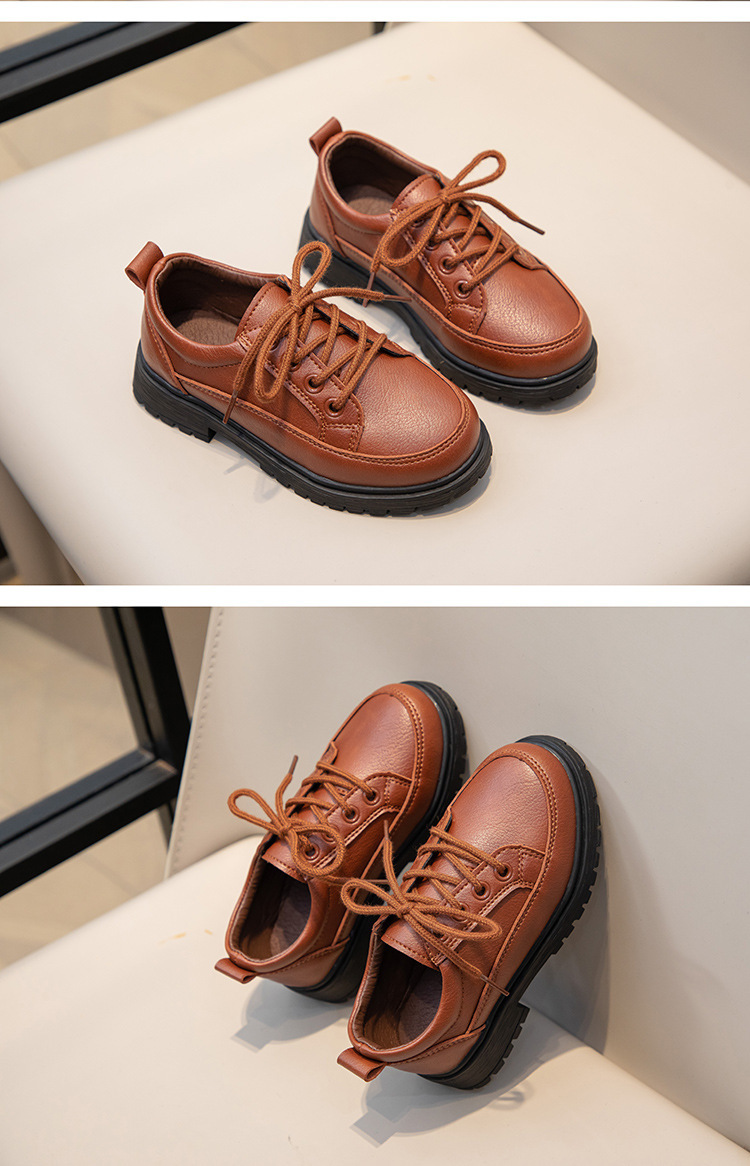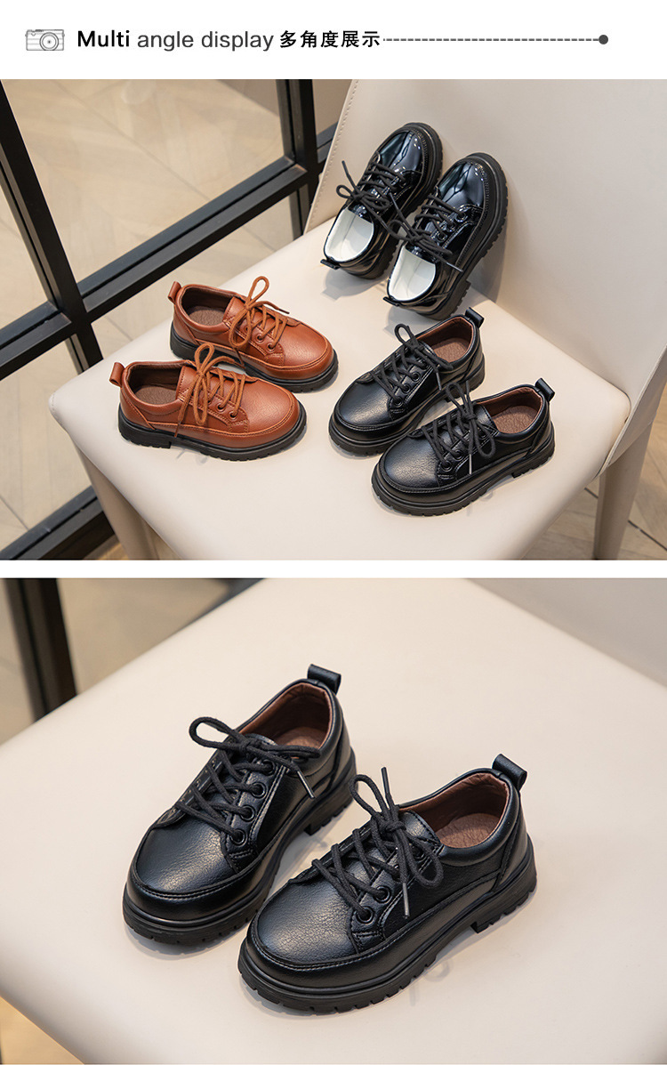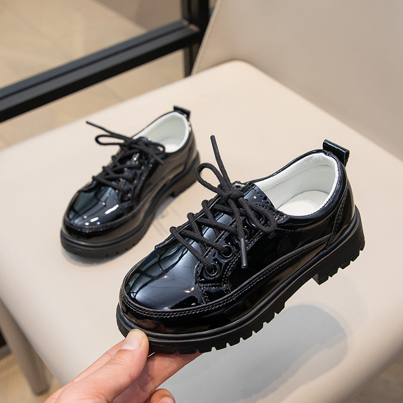 Весенне-осенние новые повседневные черные кожаные туфли на шнуровке для кампуса, матовые дышащие британские удобные кожаные туфли для маленьких и средних мальчиков