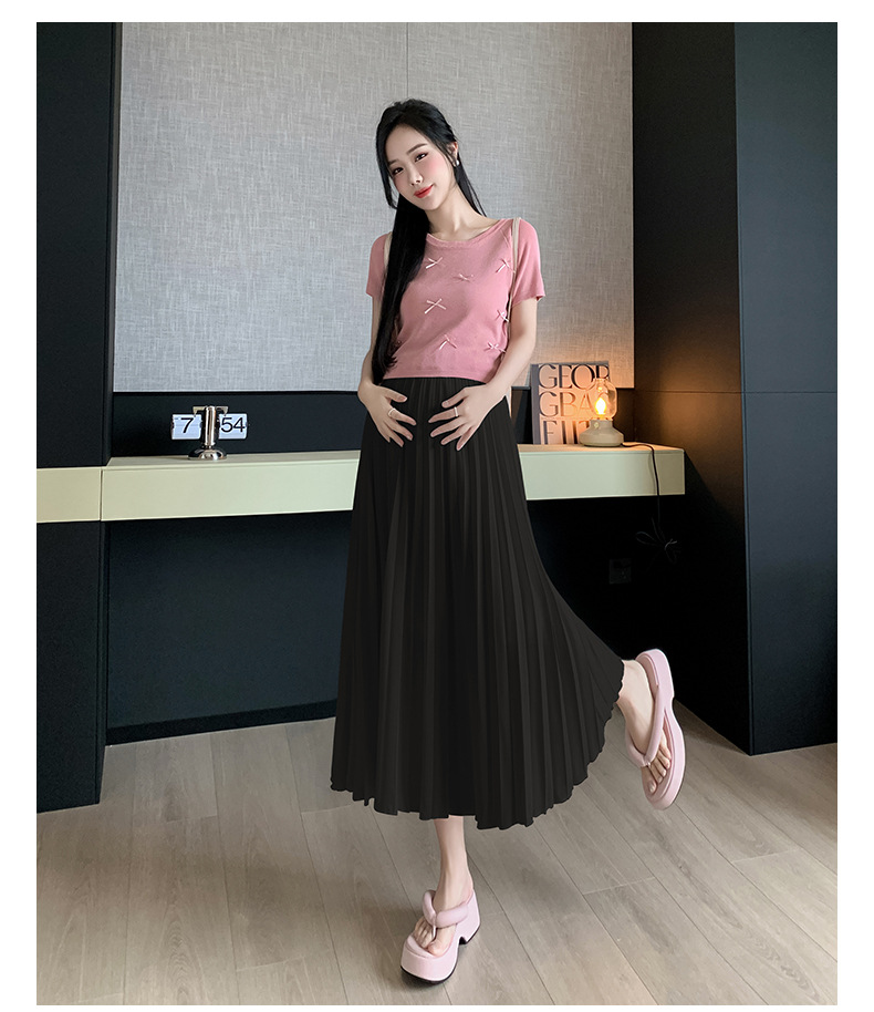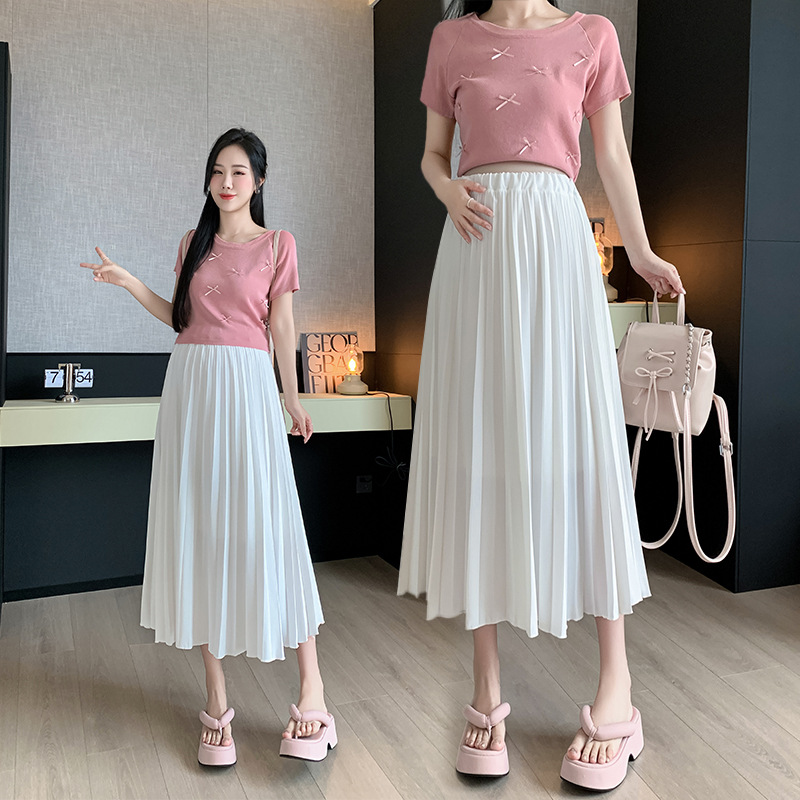 Длинная юбка для беременных без поддержки, новый повседневный стиль, новая летняя модная юбка трапециевидной формы, юбка-зонтик средней длины, плиссированная юбка