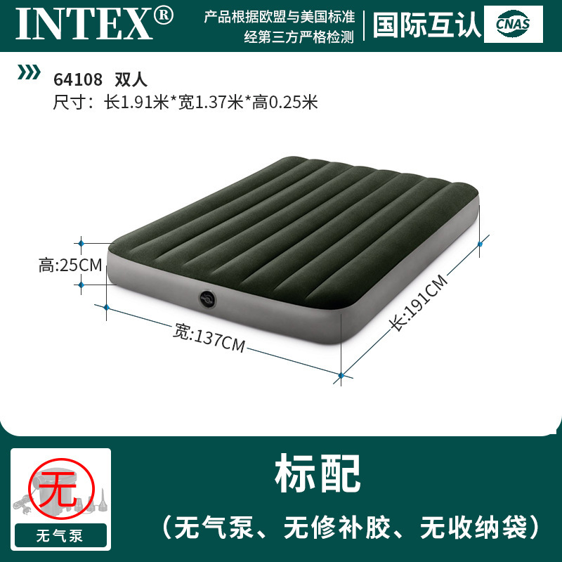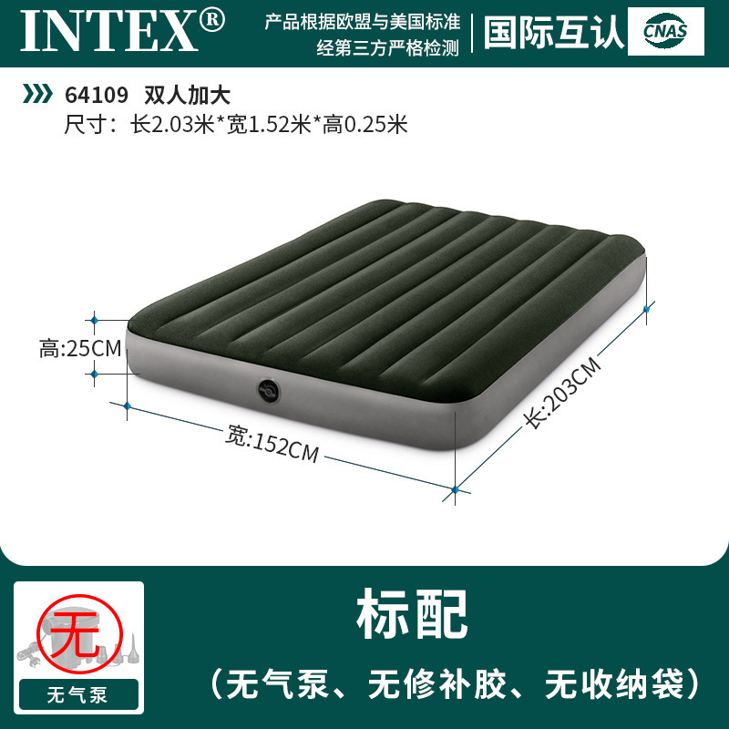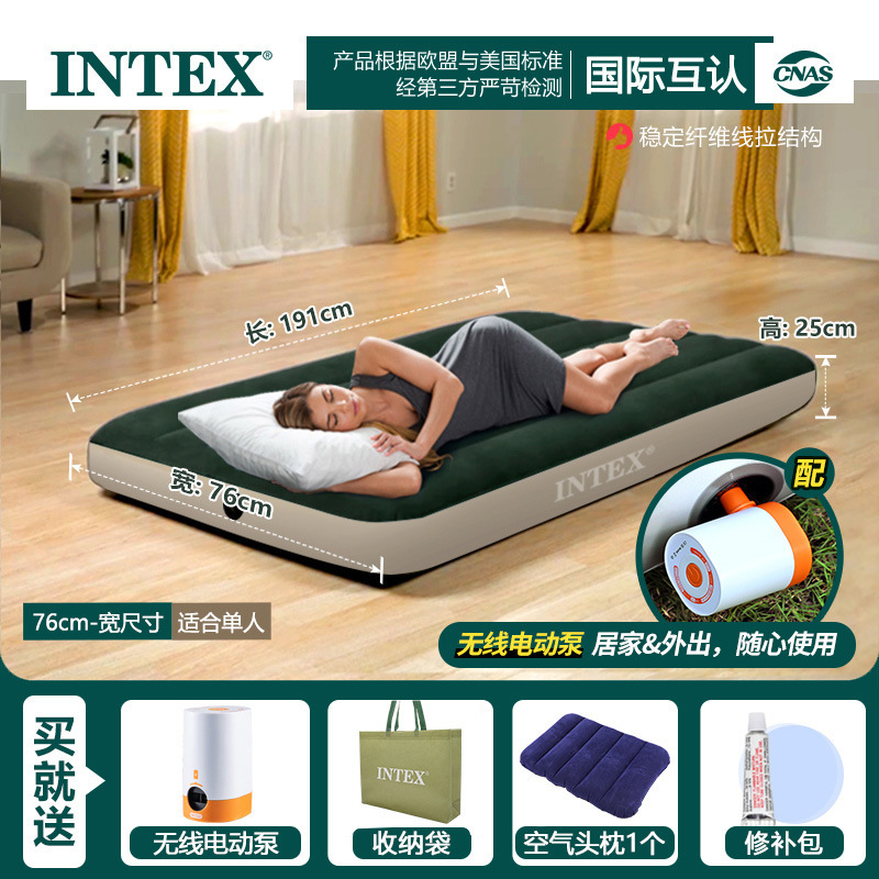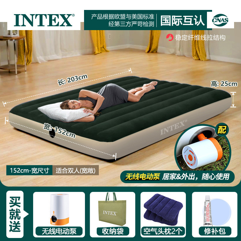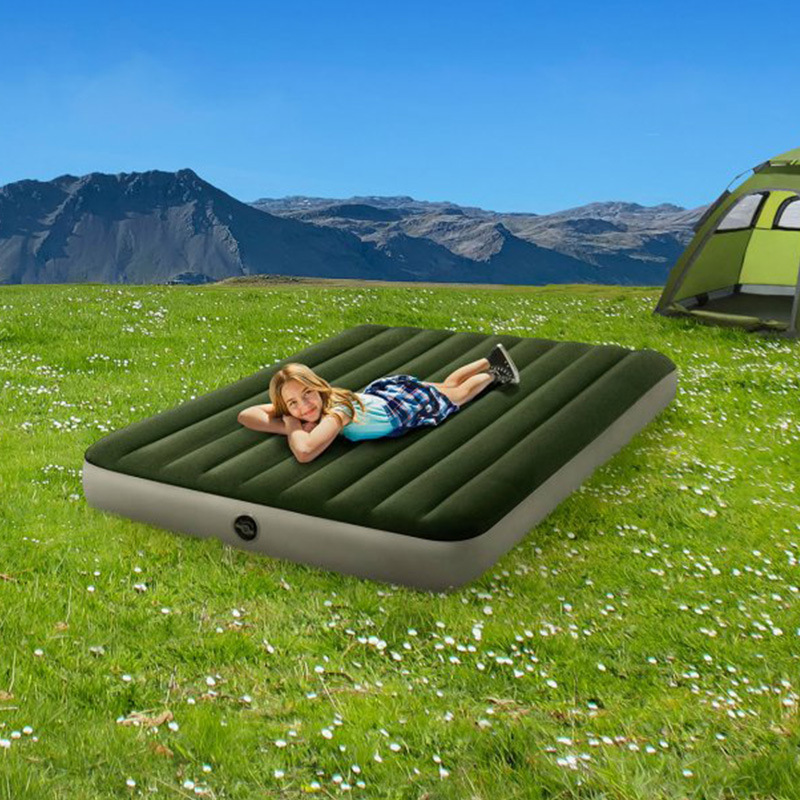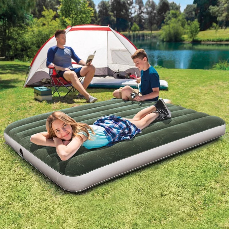 Надувной матрас INTEX, зеленый, флокированный, двуспальный, для улицы, односпальный, утолщенный, складной, для отдыха