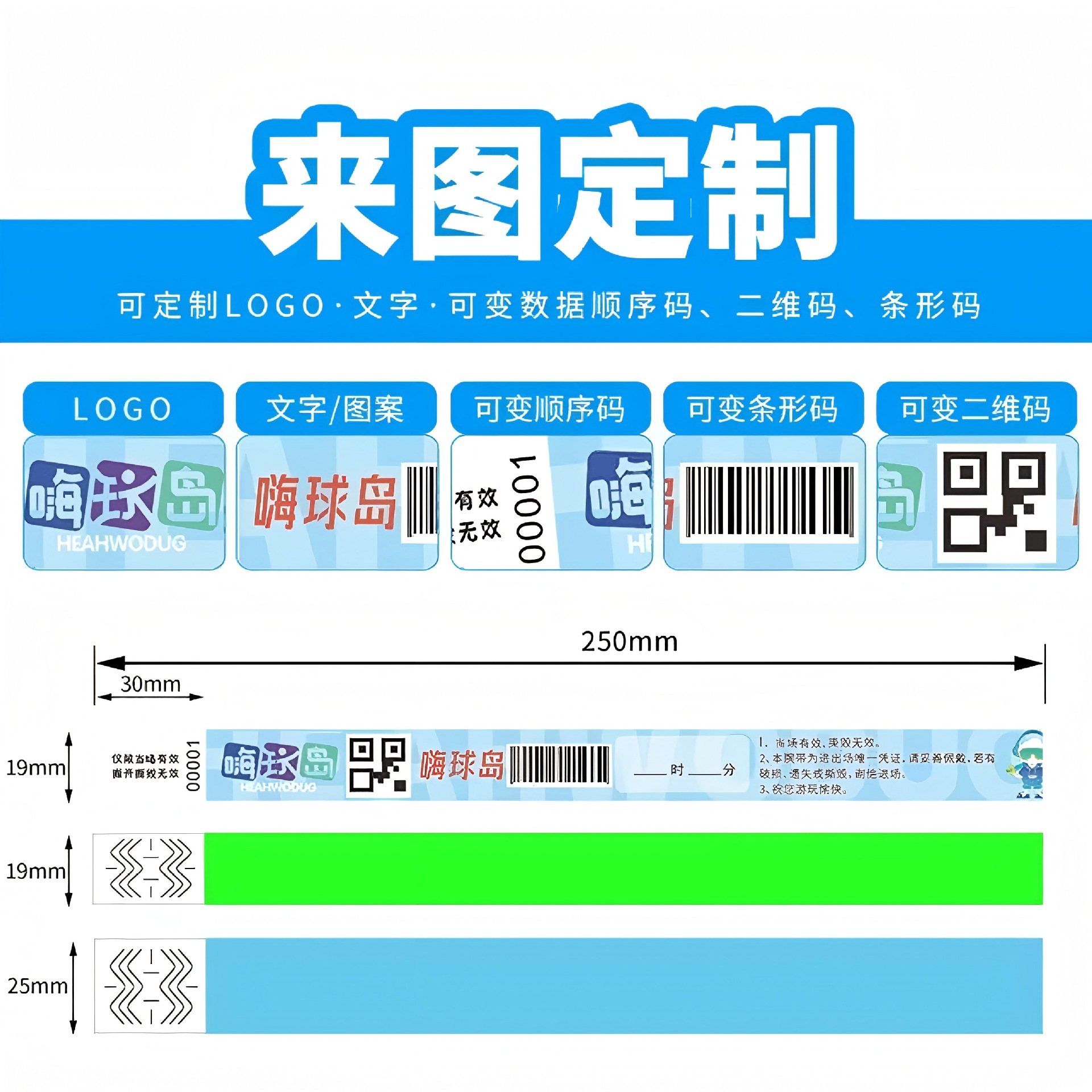 Одноразовые браслеты DuPont, индивидуальные браслеты из синтетической бумаги PP для парков развлечений, идентификационные браслеты из бумаги, защита от потери