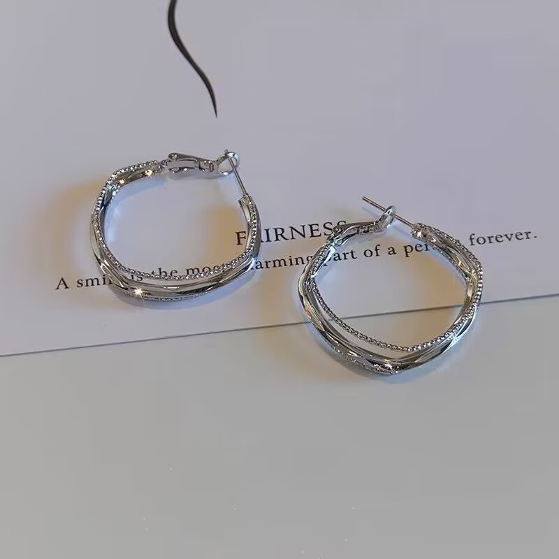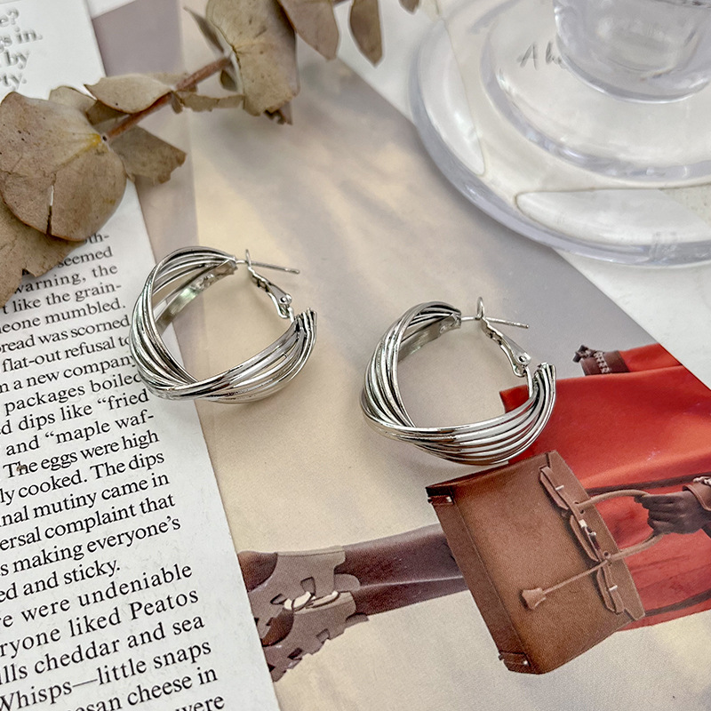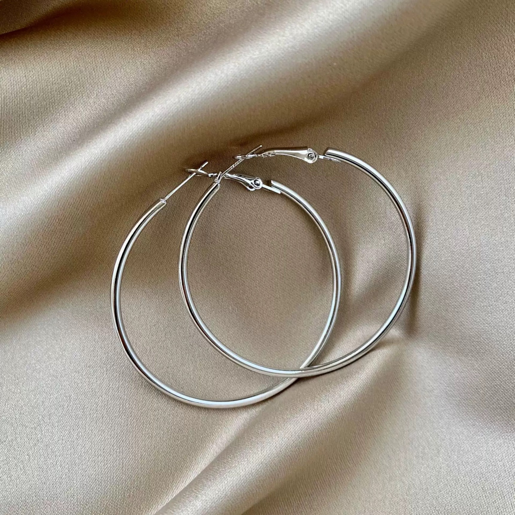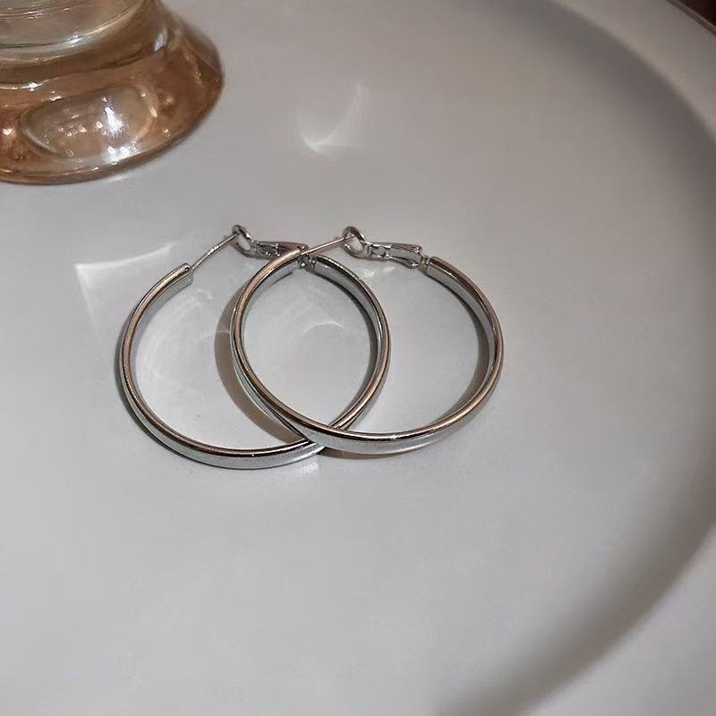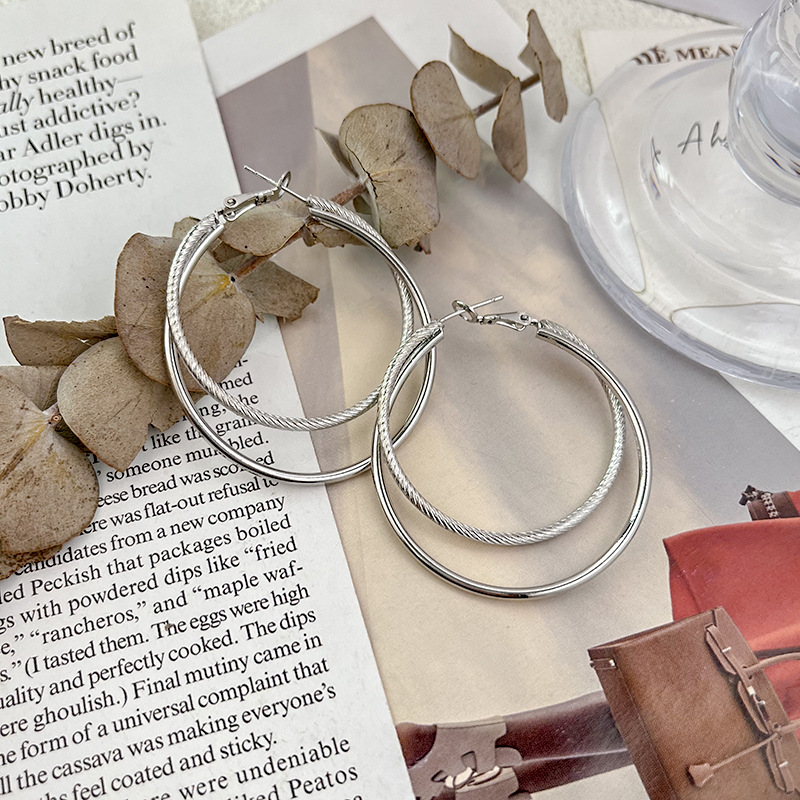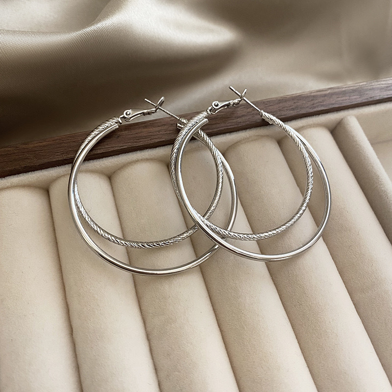 Серьги-кольца из серебра S925 с двойным отверстием, массивные круглые серьги, простые и элегантные, модные и уникальные, придают лицу более стройный вид, легкая роскошь и высокое качество.