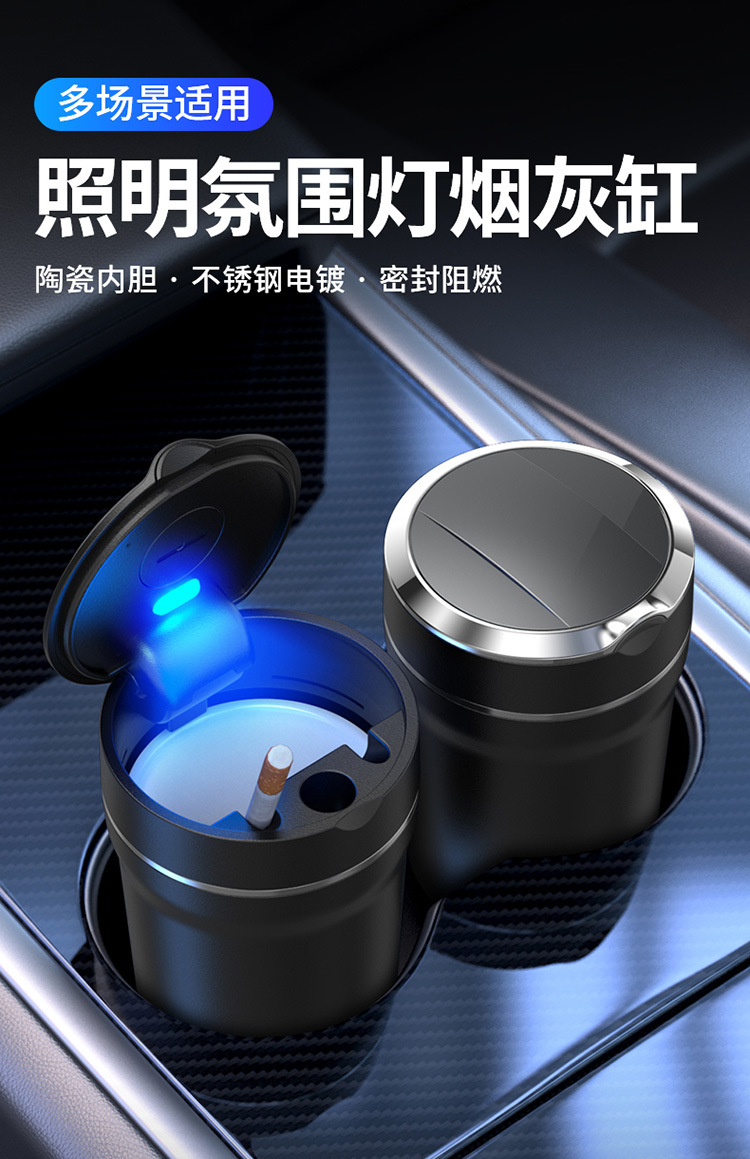 Автомобильная пепельница с керамическим вкладышем, модная и креативная автомобильная пепельница, высокая огнестойкость, автомобильная пепельница со светодиодной подсветкой