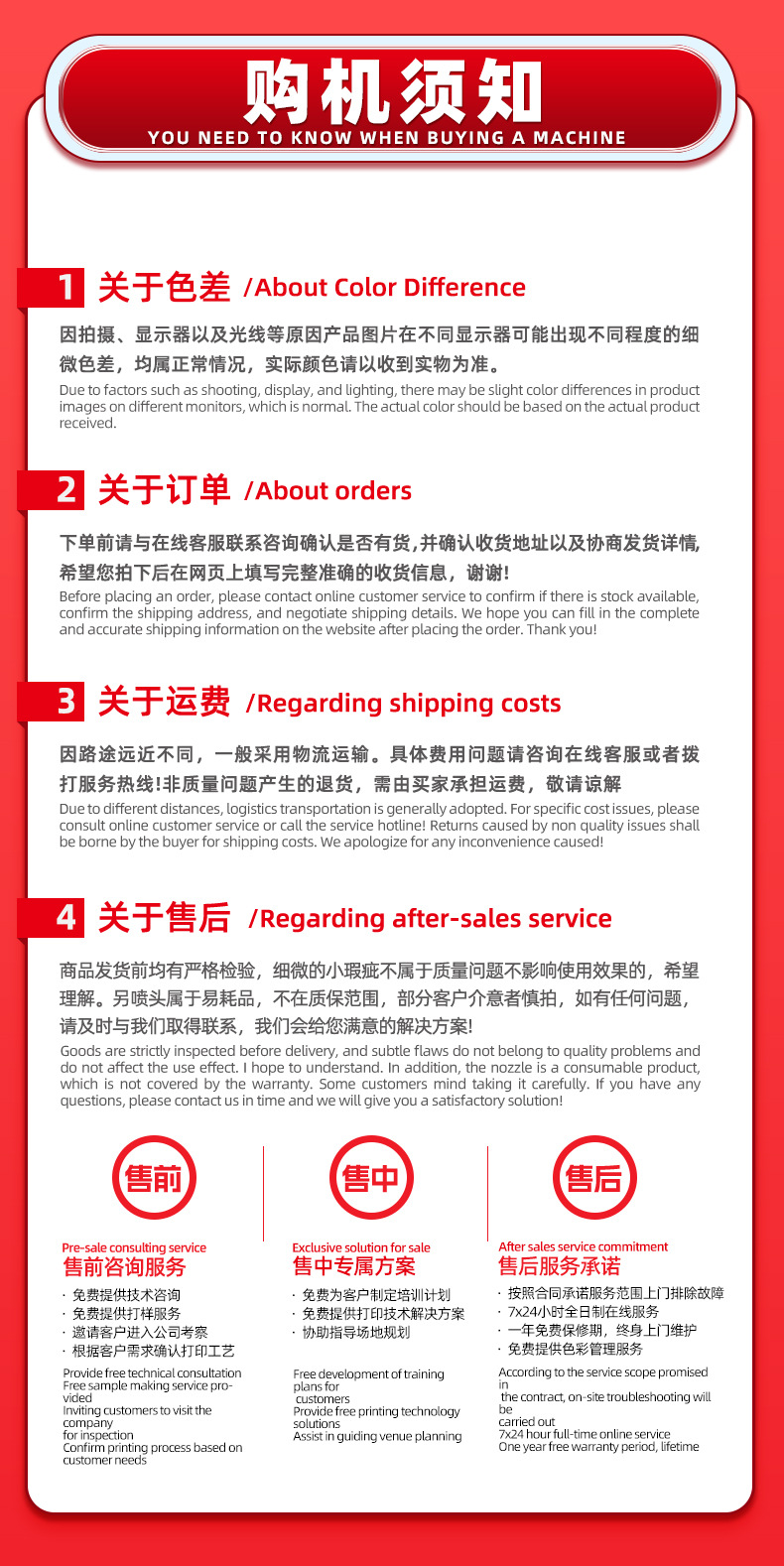 5191S фотомашина в комплекте (залог); Специальный комплект чернил i3200, 1000 мл (4 бутылки); Набор чернил на водной основе 1000 мл (8 коробок); Свяжитесь с отделом обслуживания клиентов для бесплатной проверки (получите больше скидок).