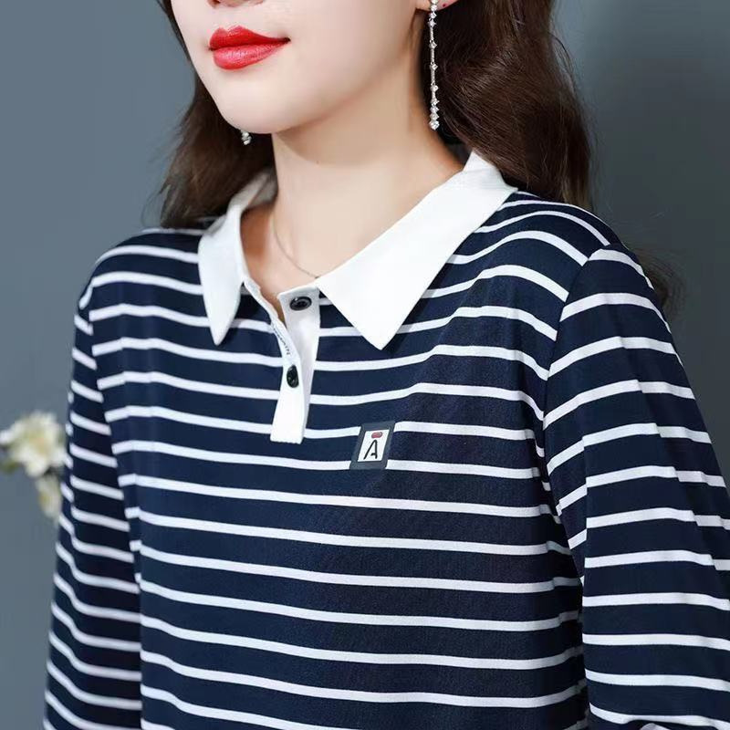 Футболка с длинными рукавами и лацканами из Юго-Восточной Азии, женская весенне-осенняя новая футболка-поло для мам среднего возраста, спортивный повседневный топ большого размера