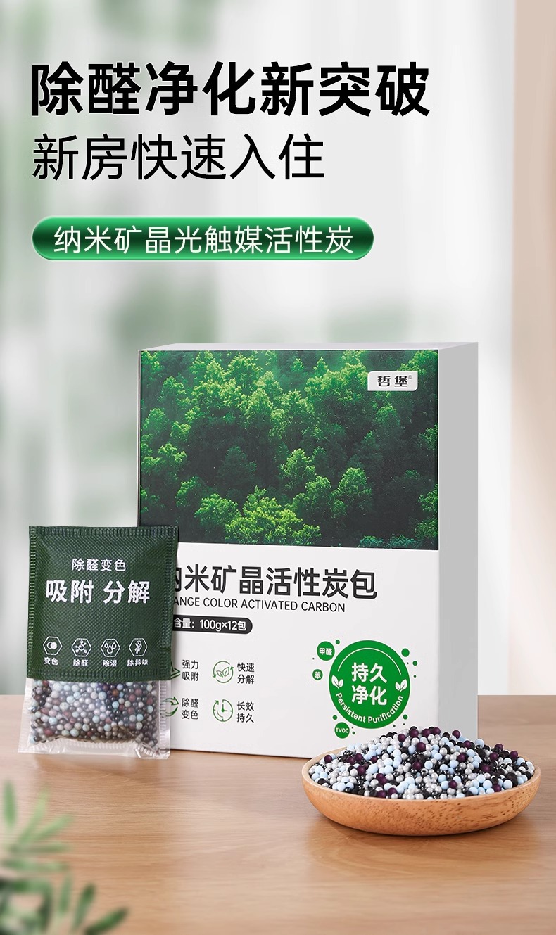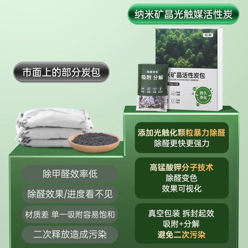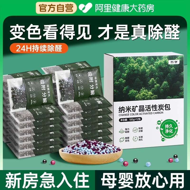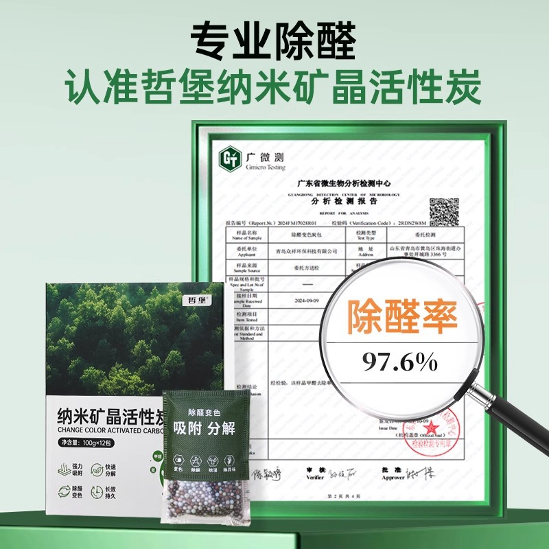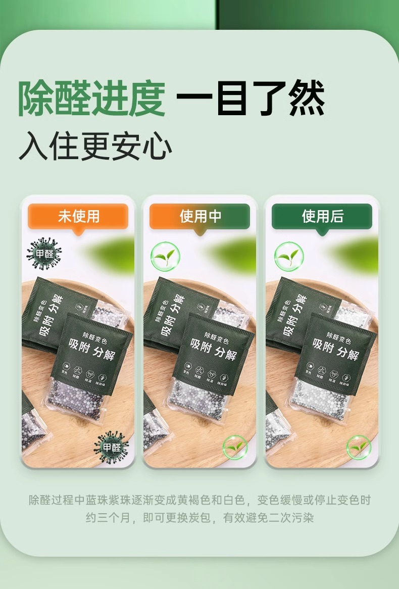 1200 г/12 упаковок [виден эффект удаления альдегида и обесцвечивания]; Коробка для обнаружения формальдегида Zhebao (1 коробка)