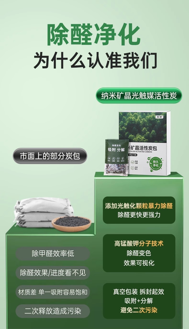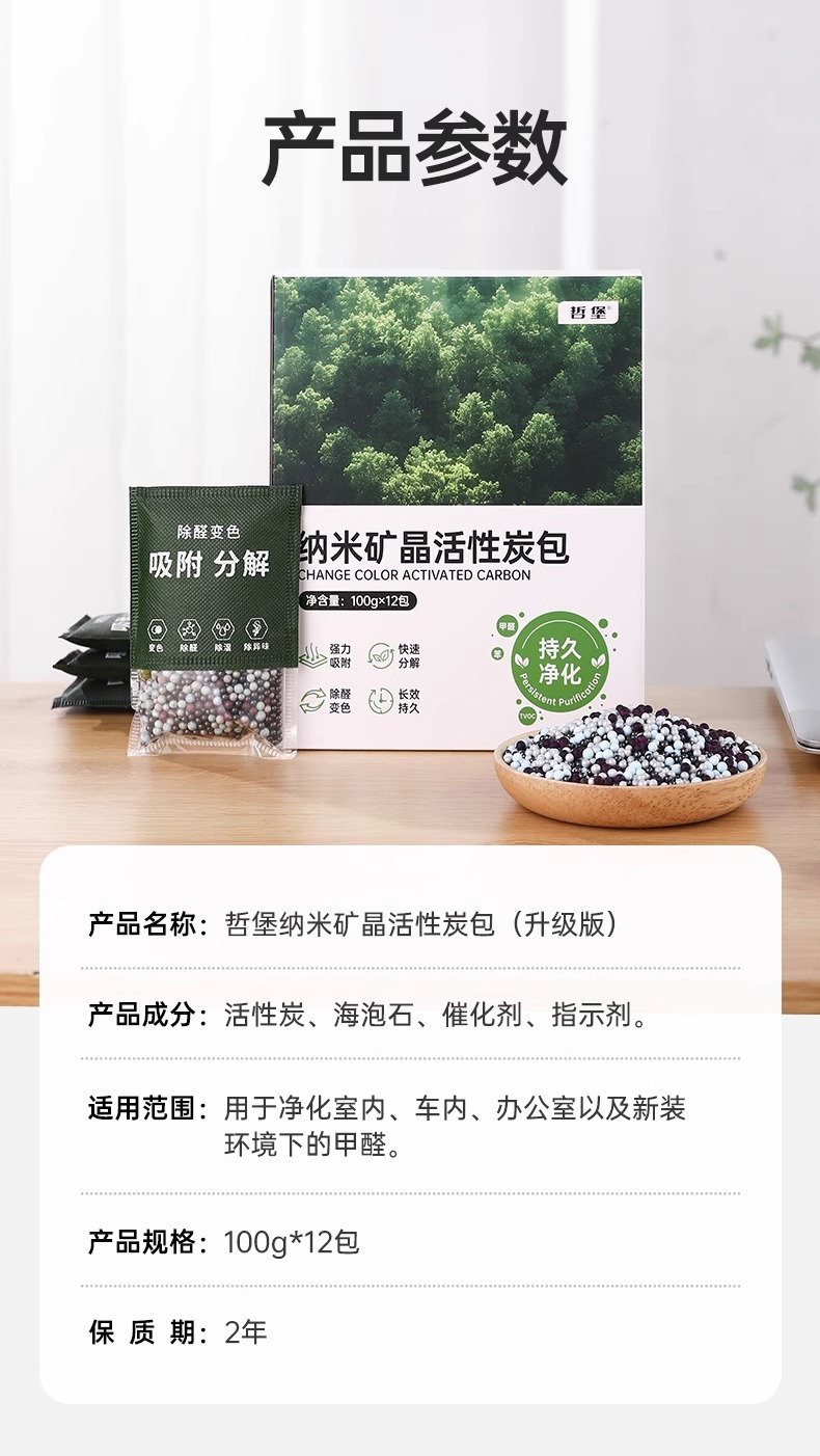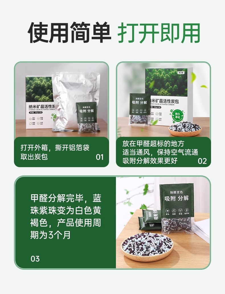 1200 г/12 упаковок [виден эффект удаления альдегида и обесцвечивания]; Коробка для обнаружения формальдегида Zhebao (1 коробка)