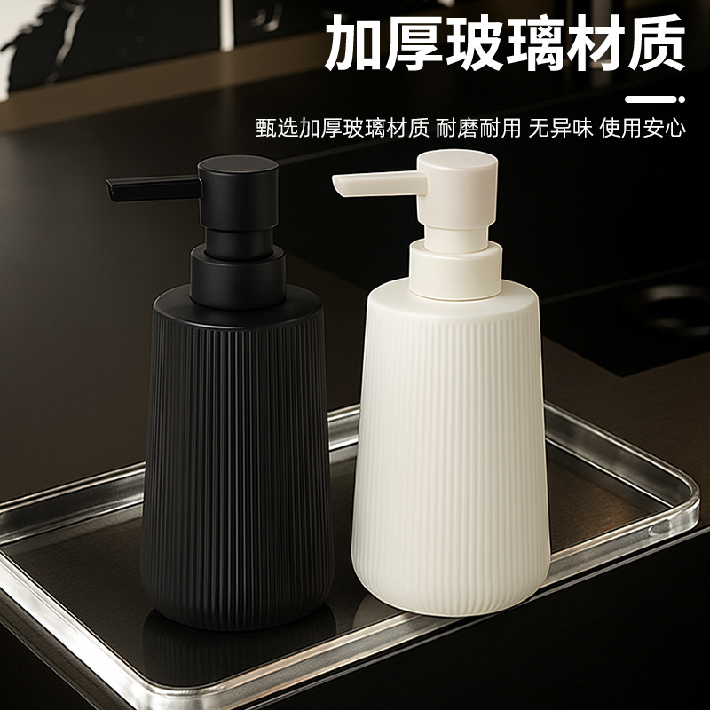 Новый трансграничный продукт, 350 мл, черно-белый стеклянный дозатор для мыла, плоское плечо, вертикальный узор, бутылка для дезинфицирующего средства для рук, бутылка для лосьона, пресс-бутылка