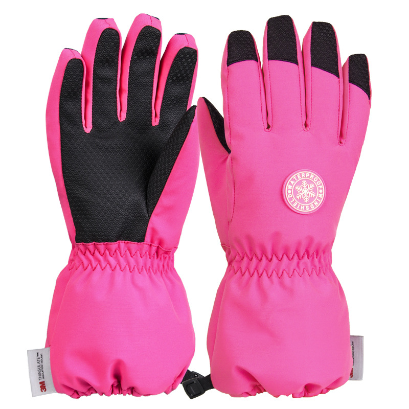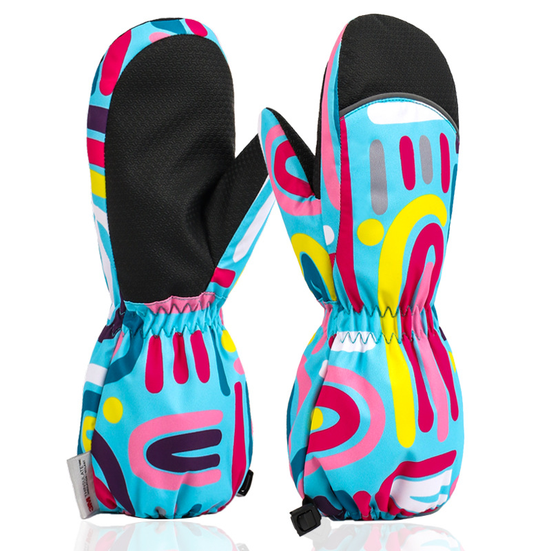 Зимние детские лыжные перчатки от производителя, ветрозащитные, теплые, на флисовой подкладке, утолщенные, для езды на велосипеде на открытом воздухе, перчатки с пятью пальцами.