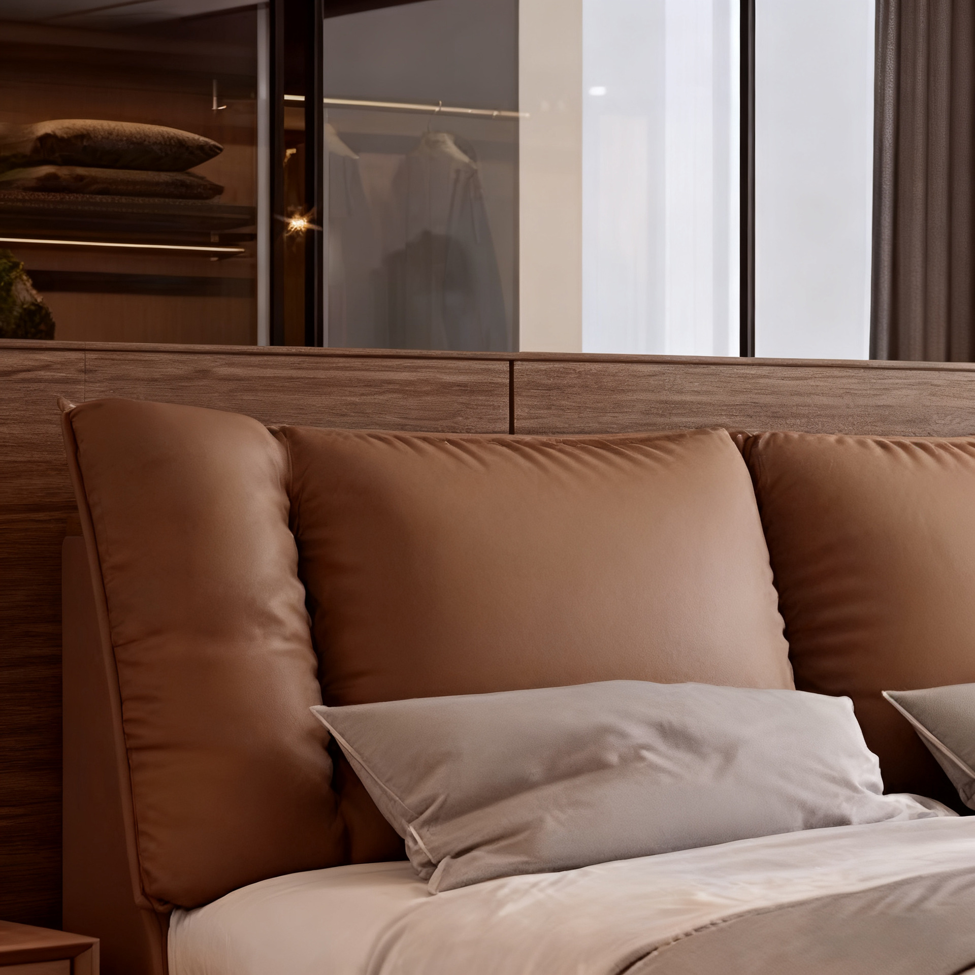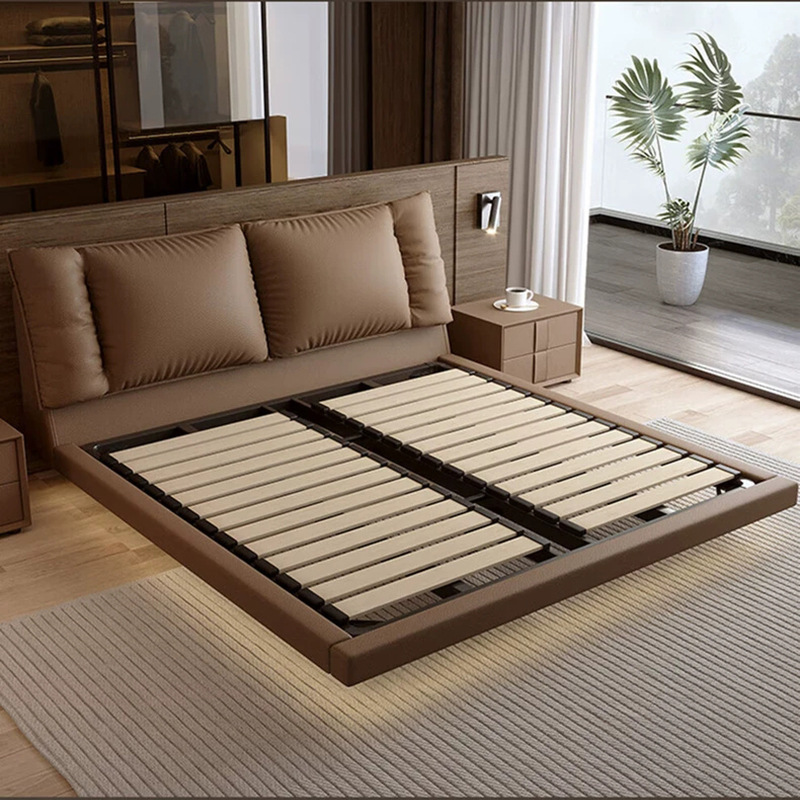 Naiqiu итальянское минималистское плавающее кожаное изголовье из воловьей кожи 1.8m в главной спальне, большая двуспальная кровать, плавающая кровать в стиле ваби-саби