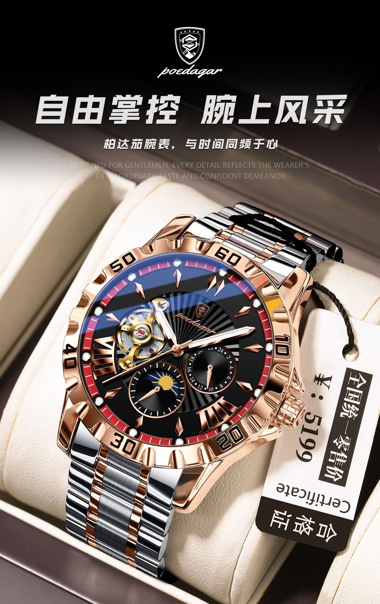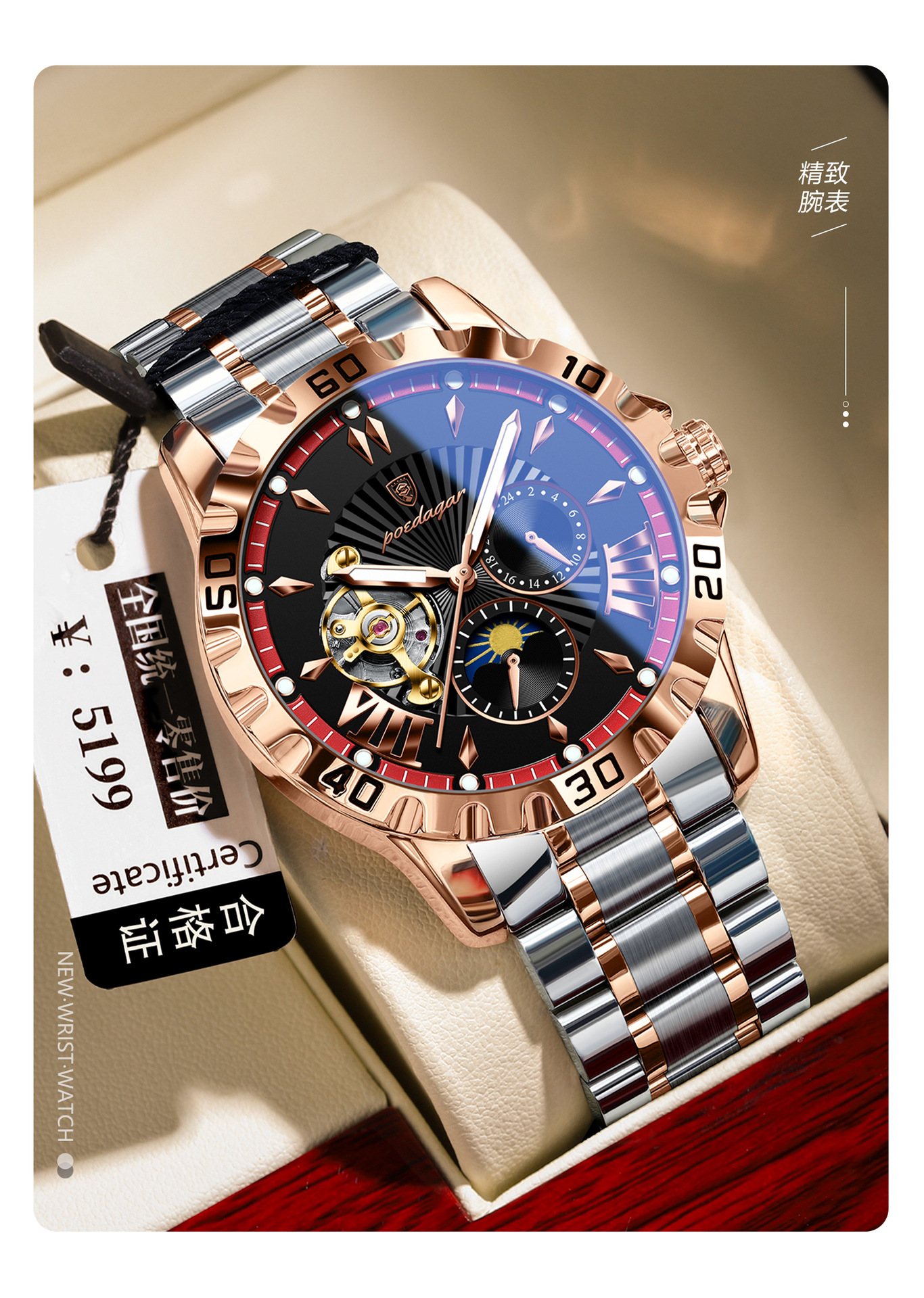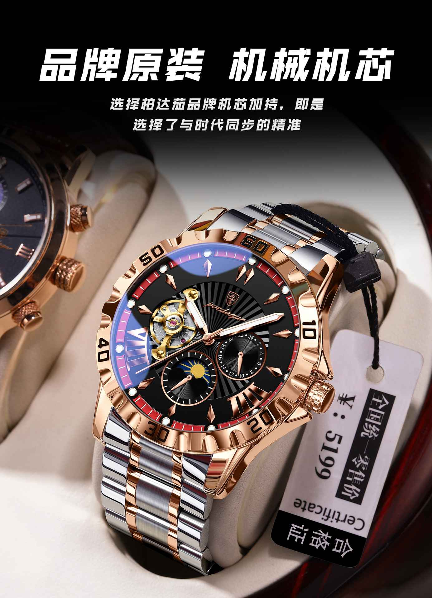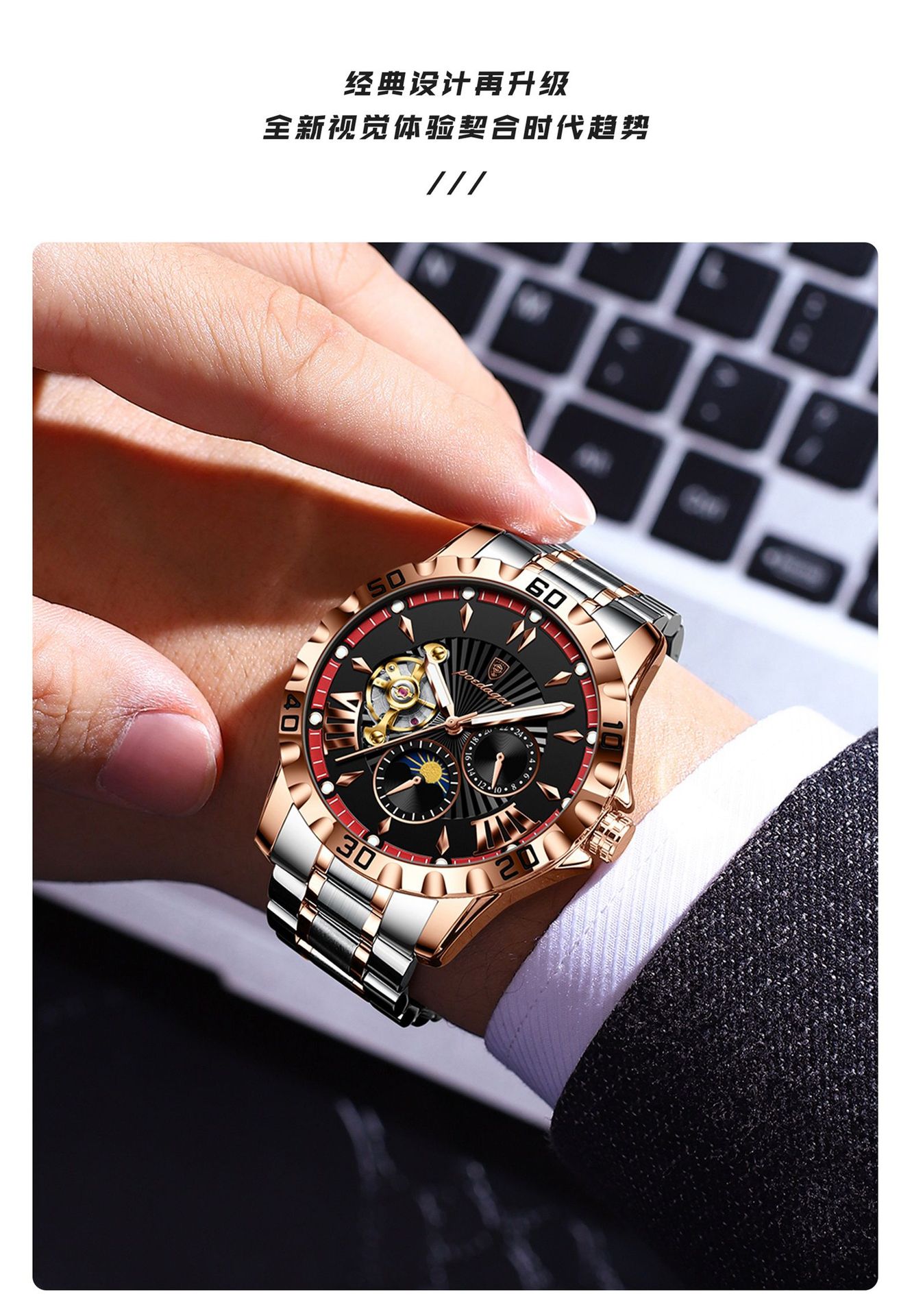 Швейцарский бренд Мужские автоматические механические многофункциональные мужские часы в прямом эфире