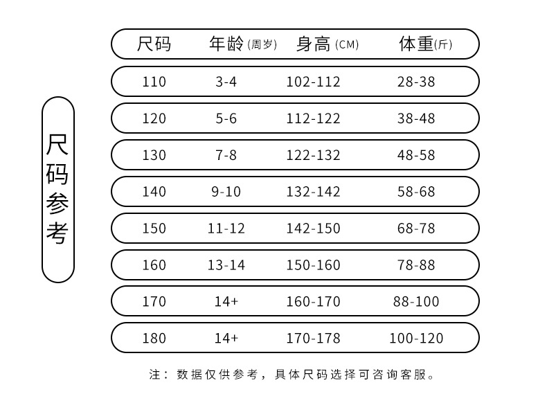 Дети (3–8 лет, рост 100–140 см)