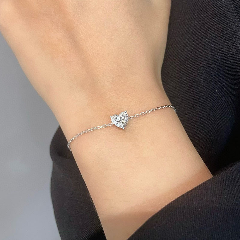 Золотой браслет в форме сердца с бриллиантами 18 карат, белый золотой браслет с искусственными культивированными бриллиантами для женщин, браслет с бриллиантами 1 карат, прямая продажа с фабрики
