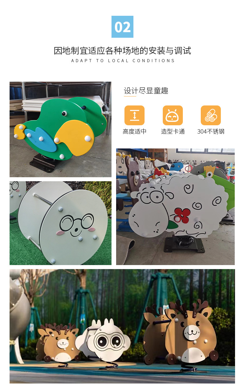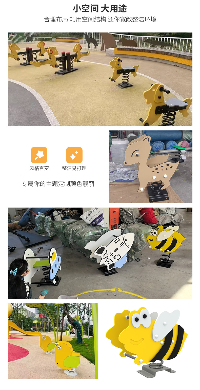 Детский уличный весенний качающийся конь для детского сада, общественный парк, мультяшное животное, PE доска, качающееся кресло, игрушка-качели