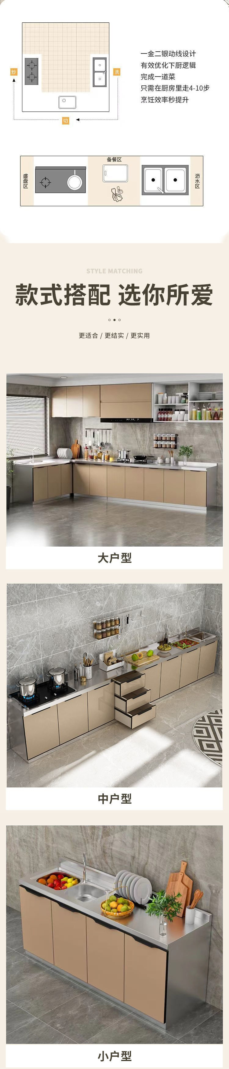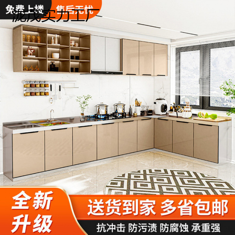 Кухонные шкафы из нержавеющей стали, простой шкаф для плиты, встроенный шкаф для аренды, сборка дома, экономичная встроенная кухня