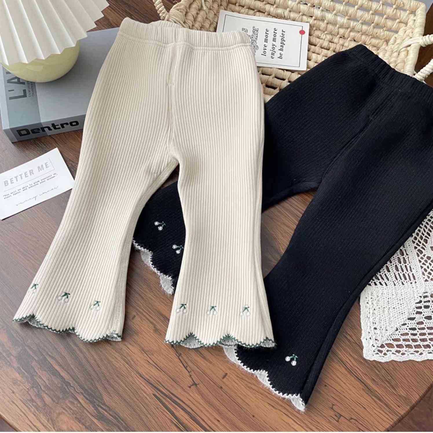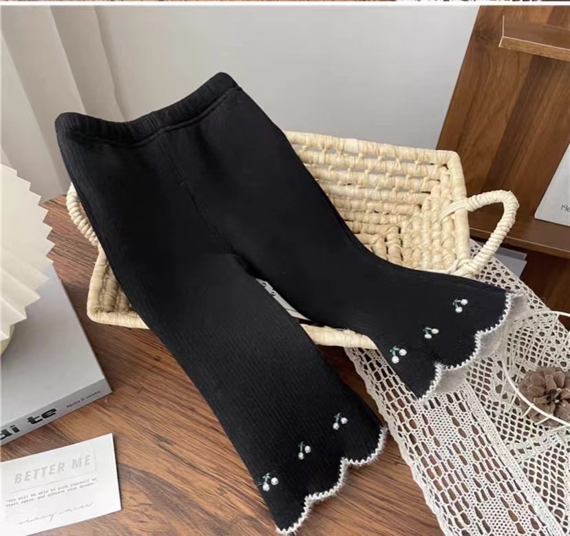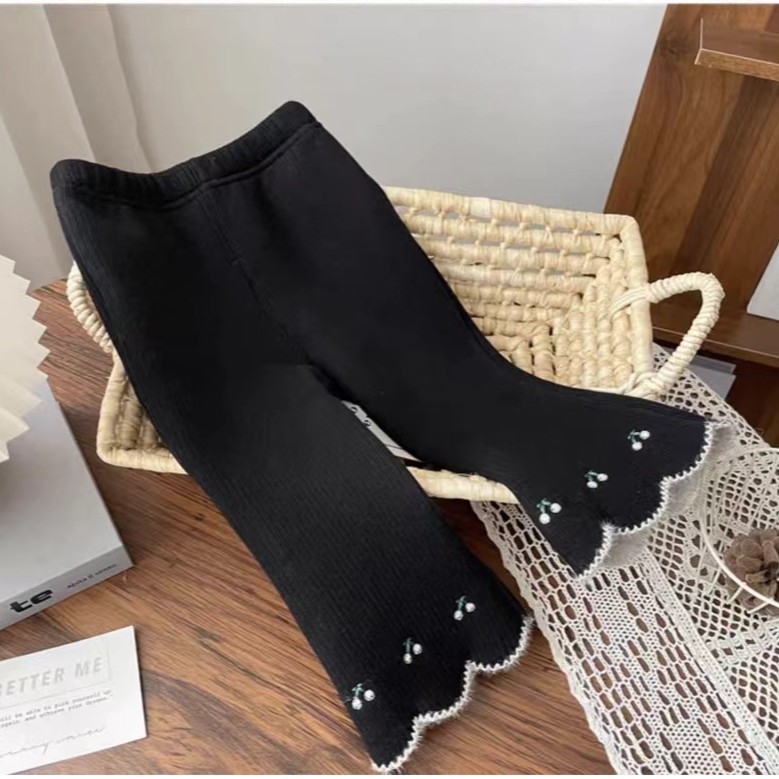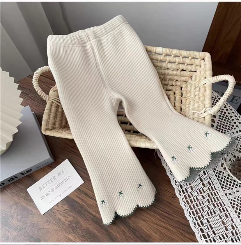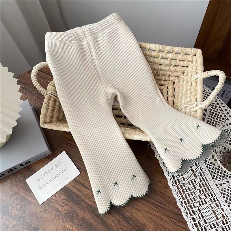 Брюки-клеш для маленьких девочек, осенние модные детские бархатные универсальные леггинсы с вышивкой в корейском стиле для верхней одежды