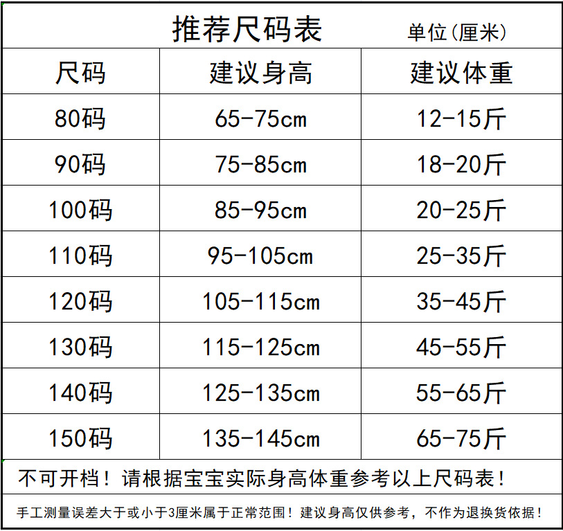 Размер 80 [Рост 66-75см]; Размер 90 [Высота 75-85см]; Размер 100 [Рост 85-95см]; Размер 110 [Рост 95-105см]; Размер 120 [Рост 105-115см]; Размер 130 [Рост 115-125см]; Размер 140 [Рост 125-135см]; Размер 150 [Рост 135-145см]