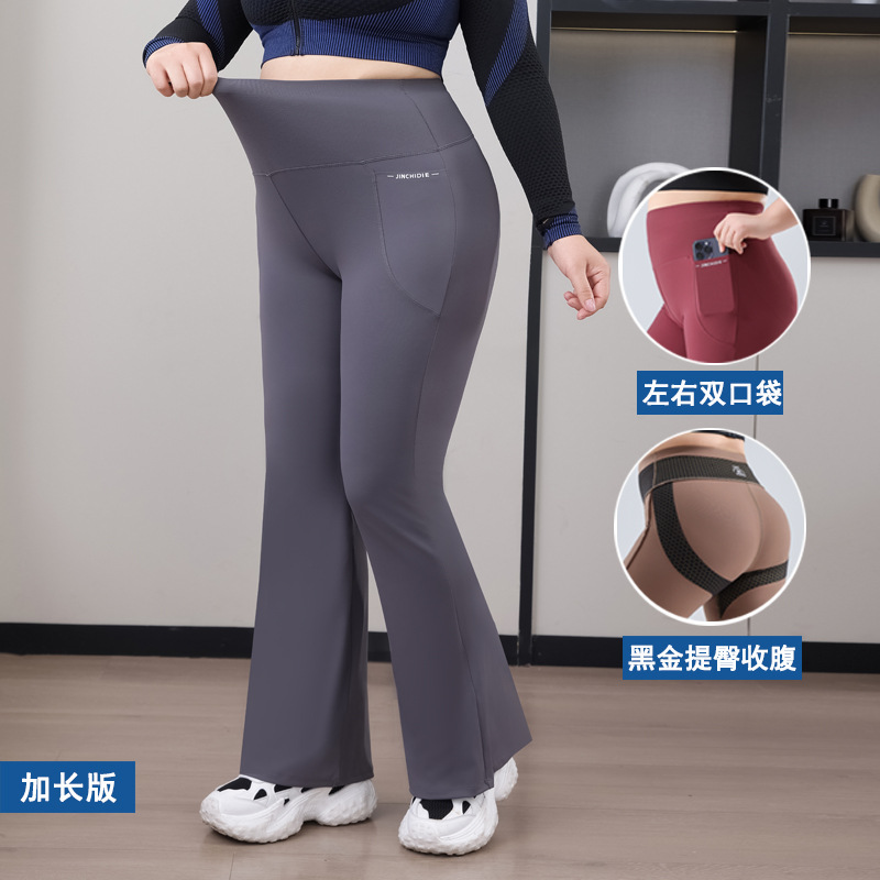 Толстая ММ с высокой талией брюки микро-лаконские брюки с черным золотым карманным рогом брюки акулы тонкие 200 кг брюки йоги большой размер женская одежда