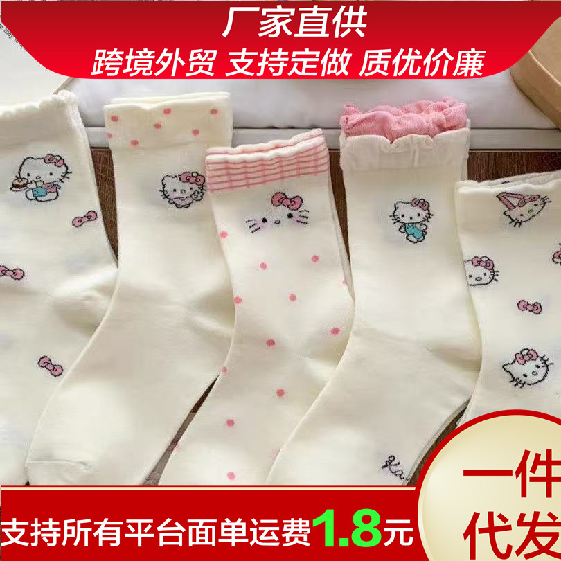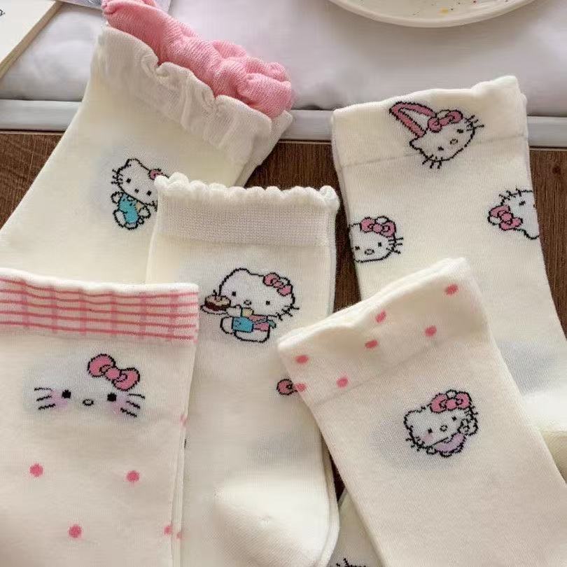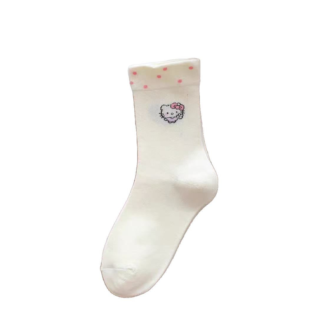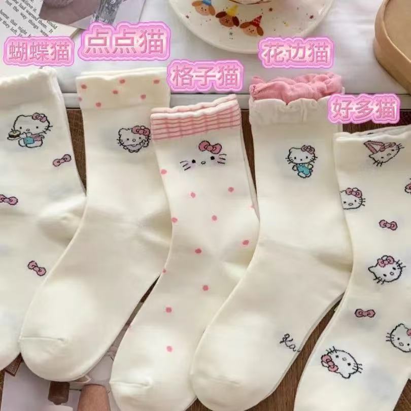 Летние тонкие белые чулки женские кошки носки женские средние чулки ins японские сладкие мультяшные кружевные чулки