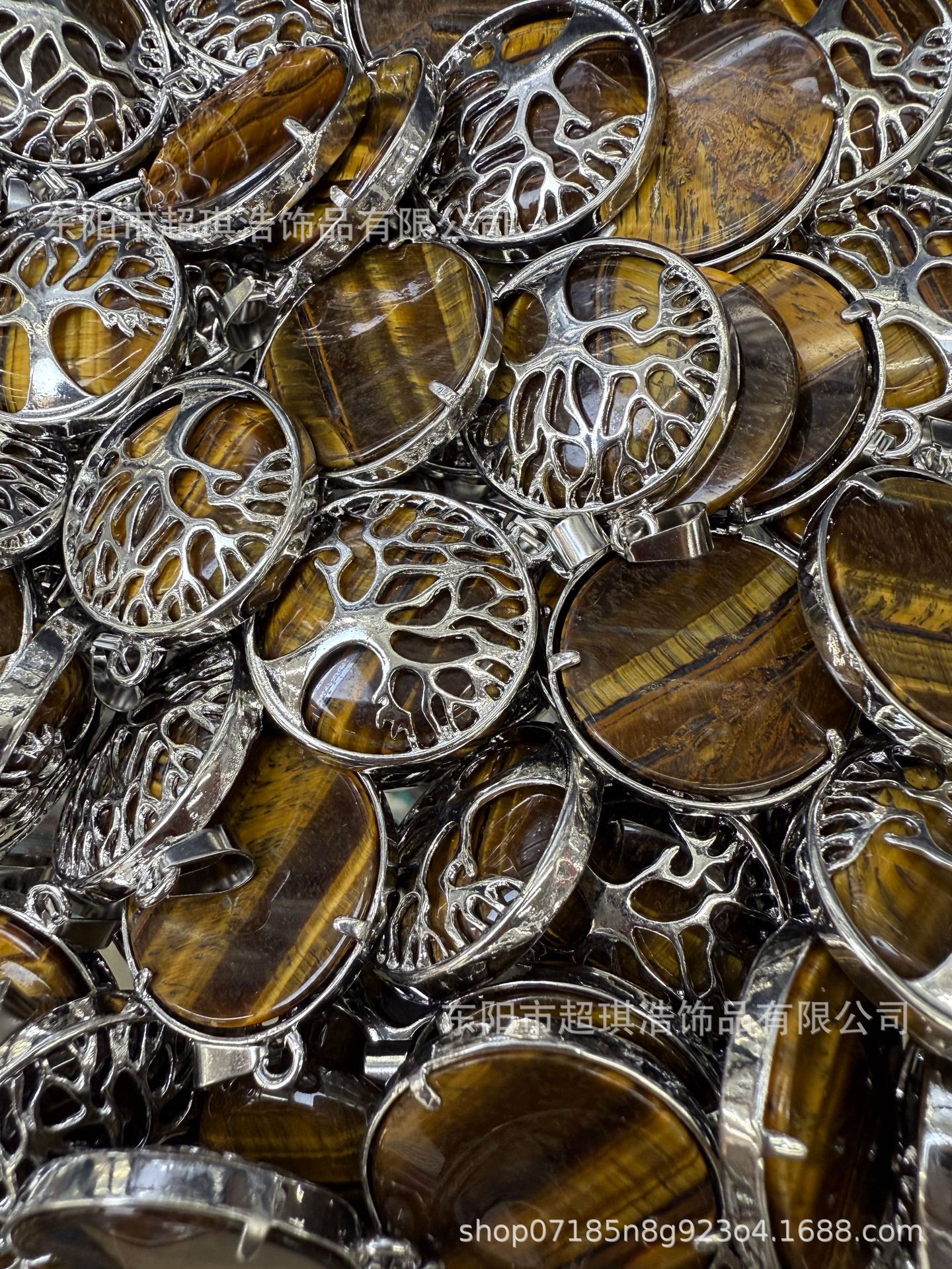Кулон из натурального камня, кристалл, агат, круглый, из сплава, с изображением Древа Жизни, ожерелье, ювелирные украшения, аксессуары, аметист, белый кристалл