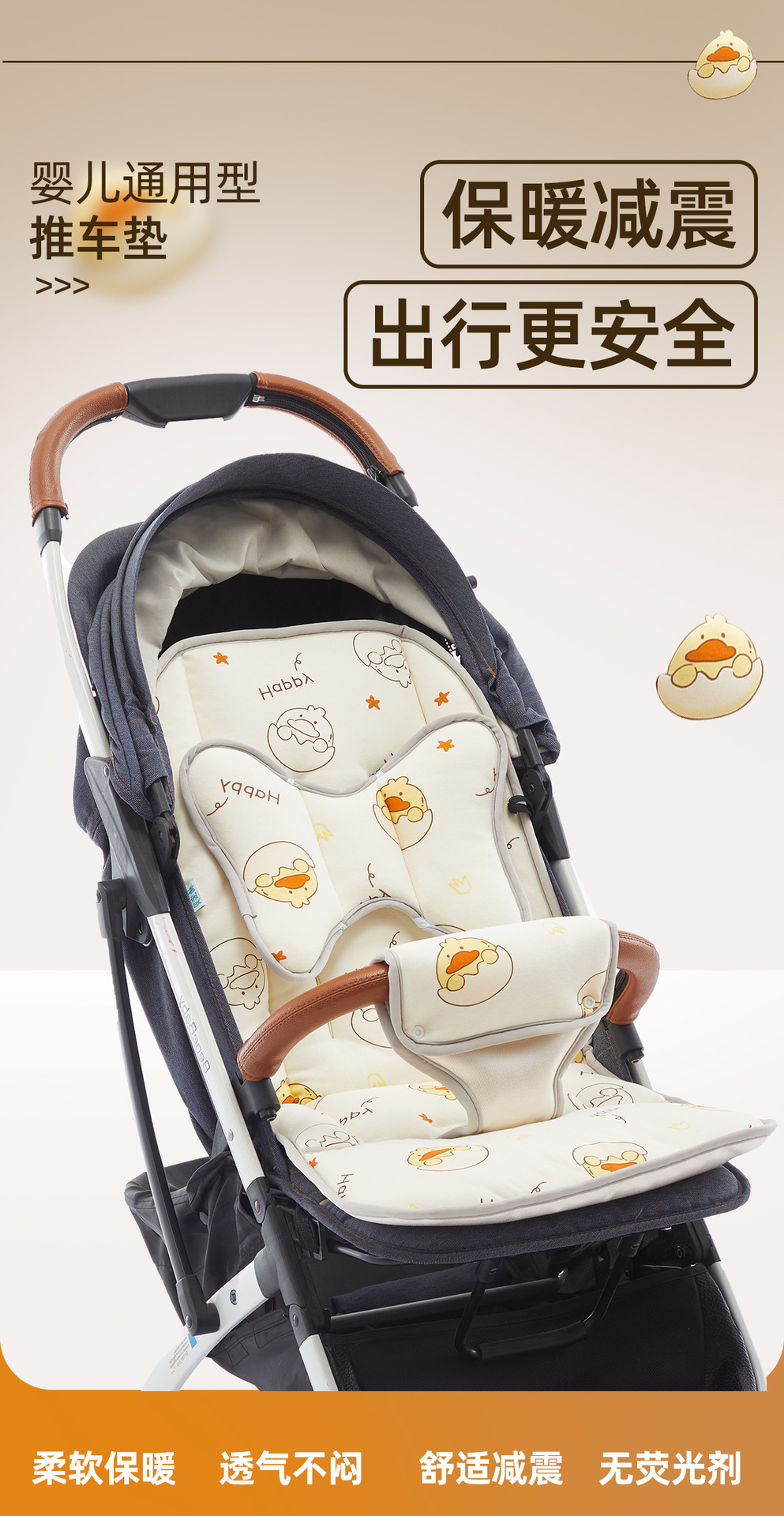 Увеличенная подушка для сиденья на все времена года, передняя защита, двусторонний матрас для коляски, теплая подушка для сиденья коляски из чистого хлопка.