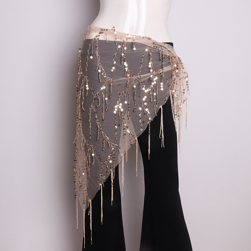 Цепочка на талию для танца живота, интернет-знаменитости, джазовый танец, барабаны, квадратный хип-шарф для уличных танцев, треугольный шарф для начинающих, пояс с кисточками и блестками
