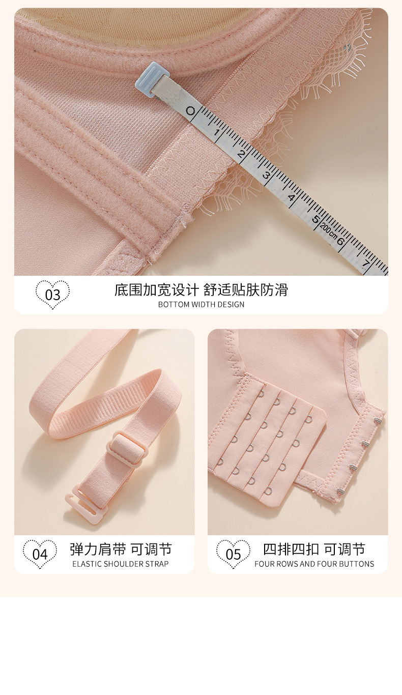 собрать; Бесследный; дышащий; подталкивать вверх; Красивая спина; Регулируемый тип; удобный; Боковой сбор; Закройте вторичные груди