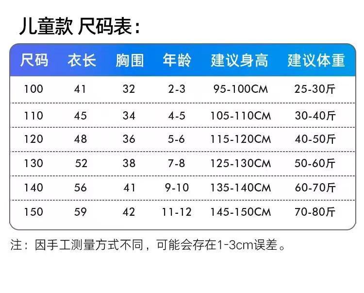 100cm; 110cm; 120cm; 130cm; 140cm; 150cm; S; M; L; XL; 2XL; 3XL
