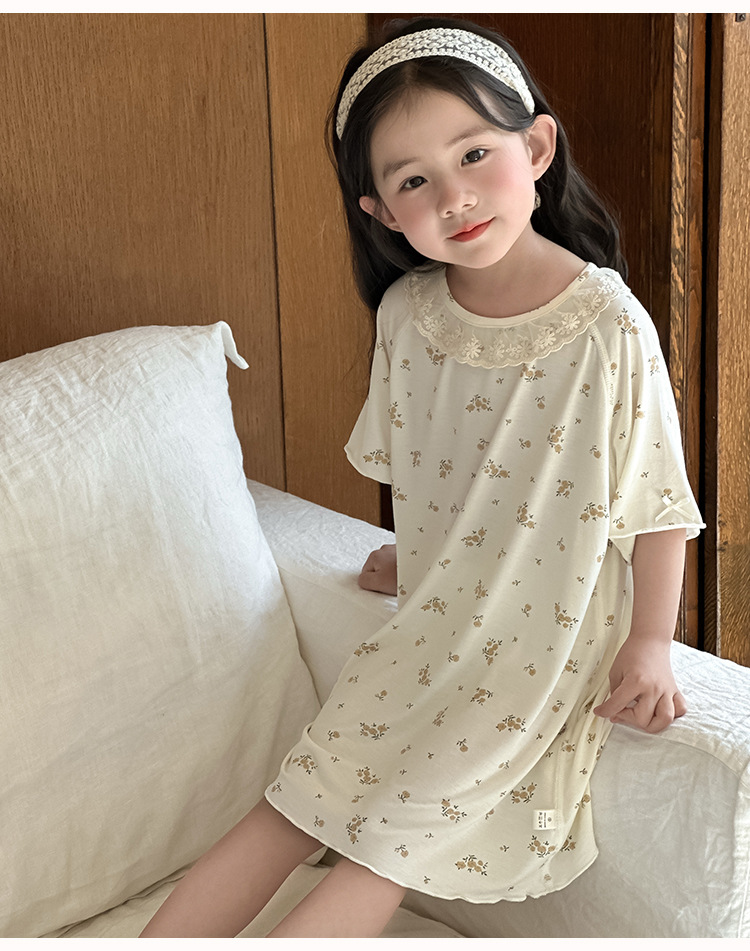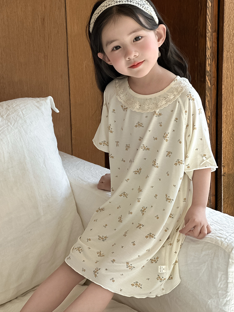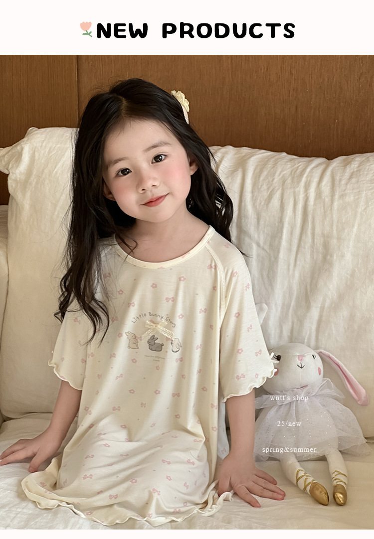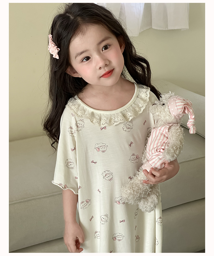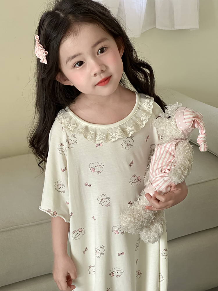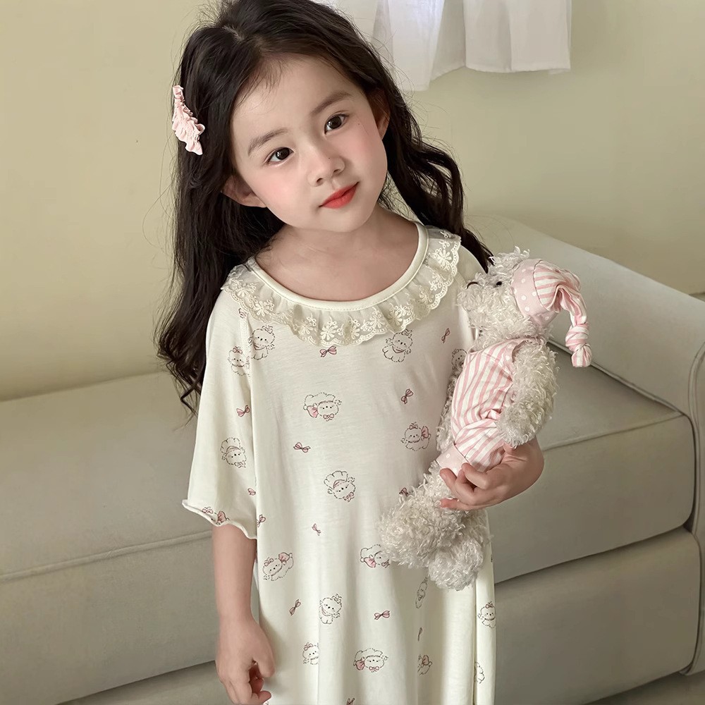 Детская ночная сорочка для девочек, лето 2026, новая модель, экологичное шелковое домашнее платье, детское платье из модала для девочек, корейский стиль