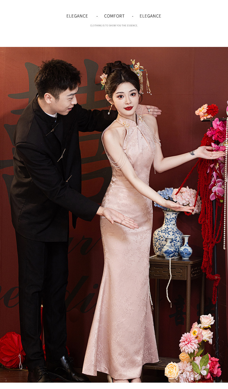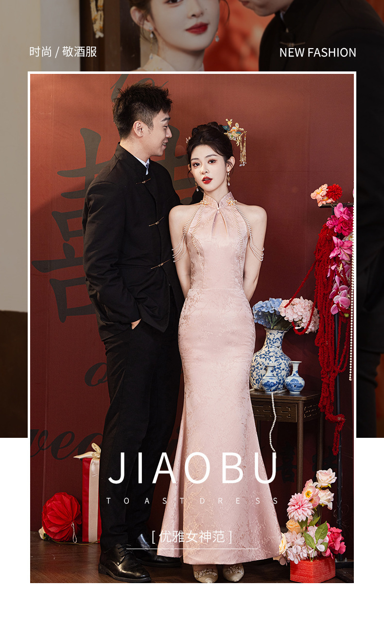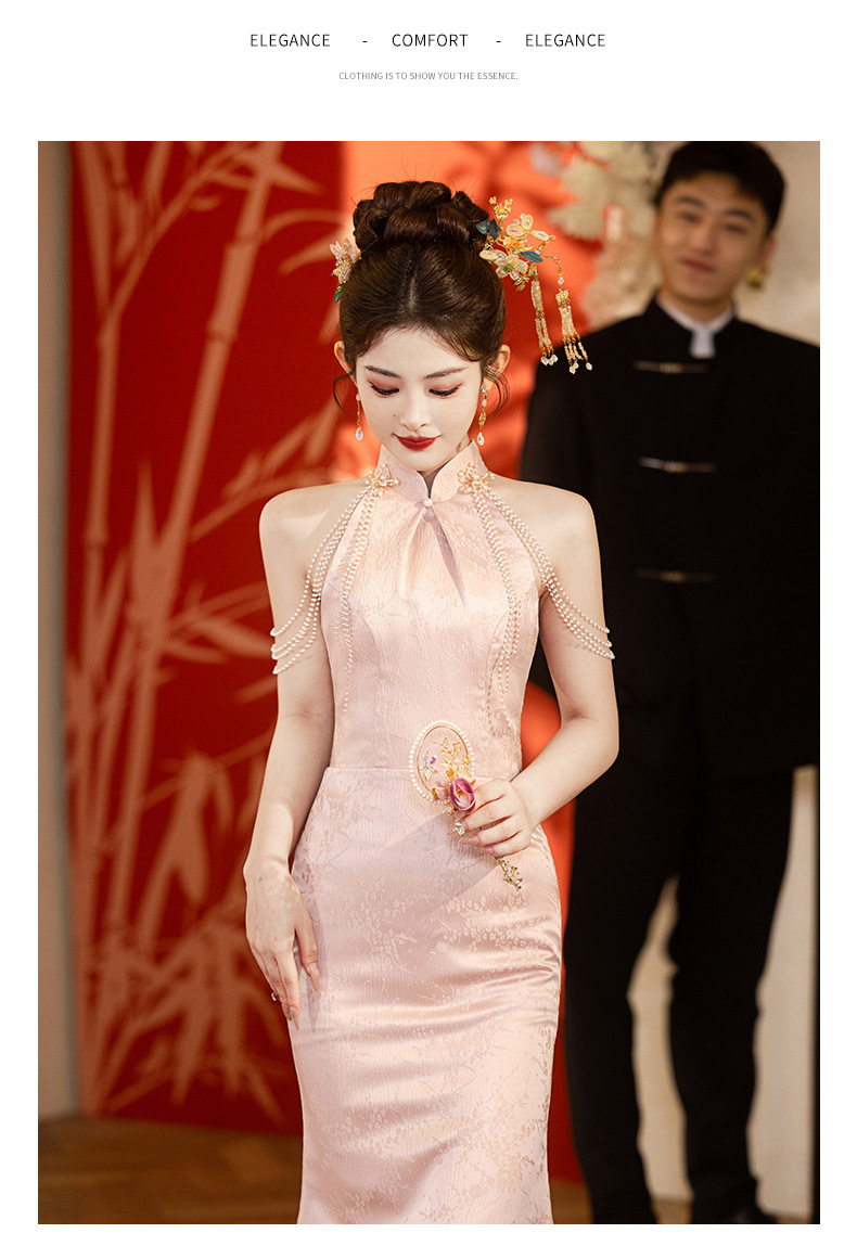 Розовый тост с шеей Cheongsam с рыбьим хвостом