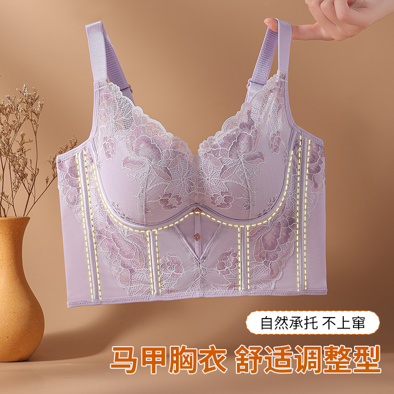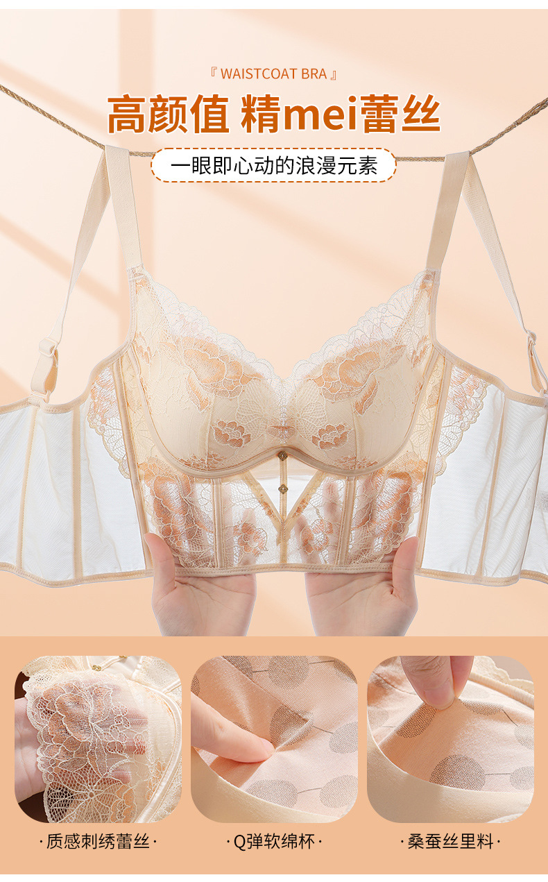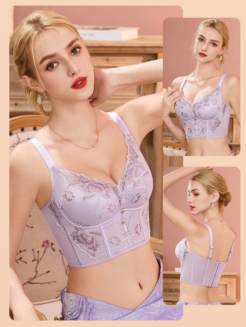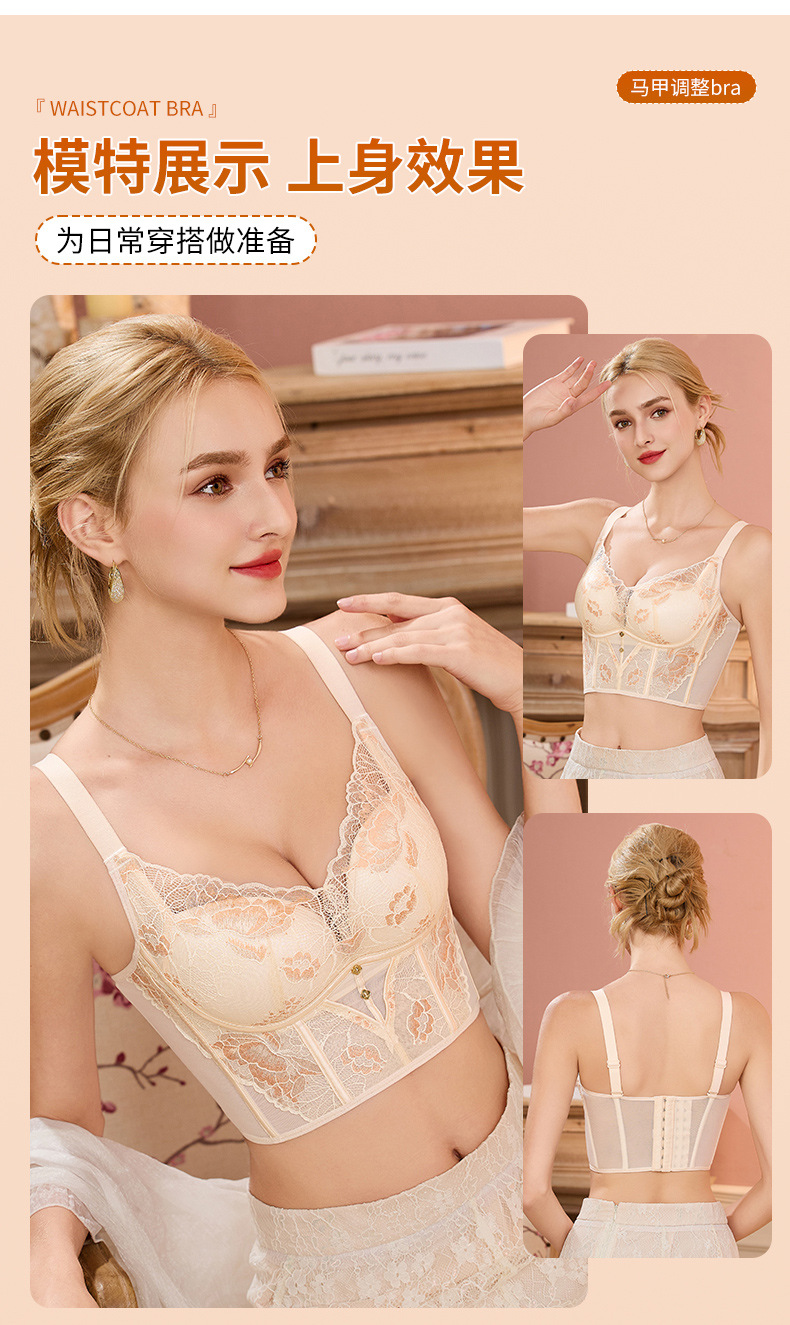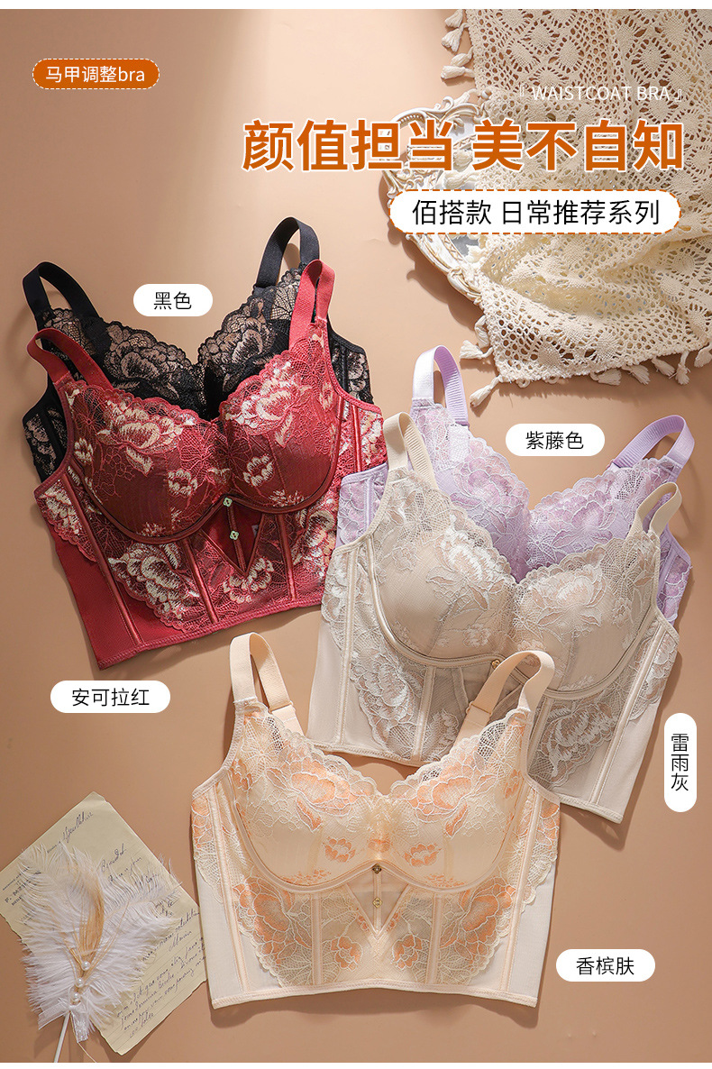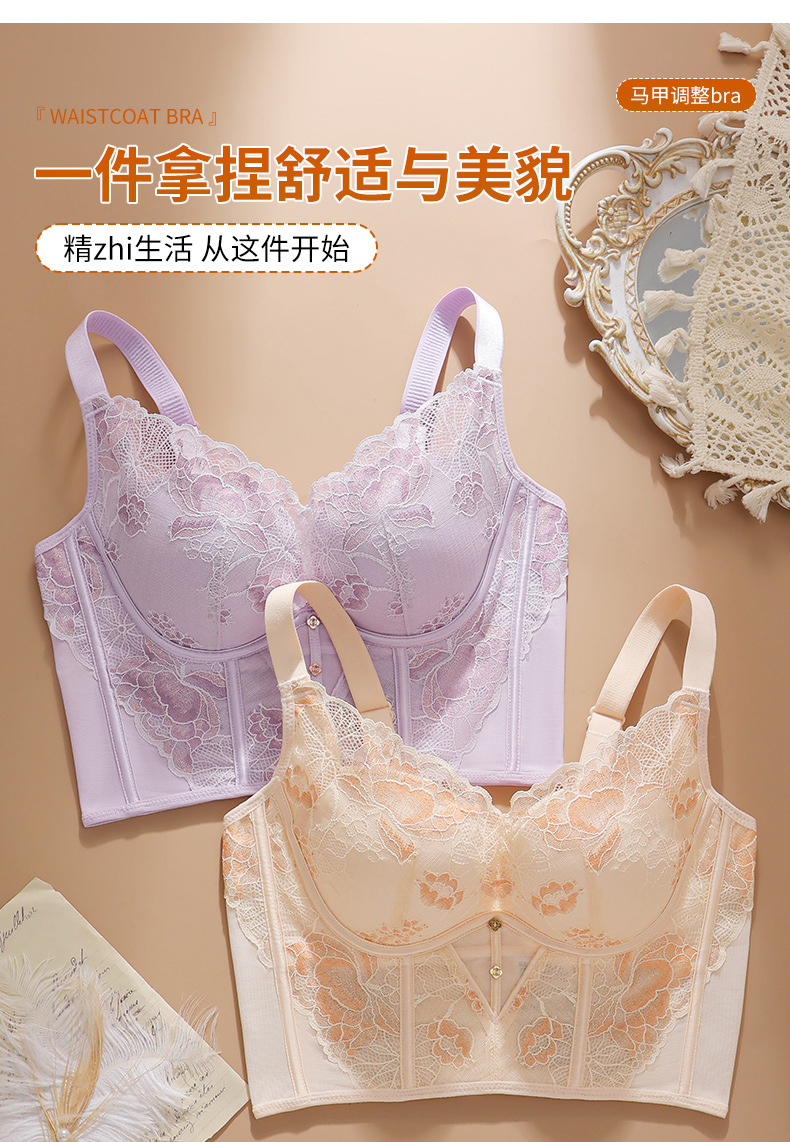 Корректирующее белье в форме жилета во французском стиле, сексуальный кружевной бюстгальтер пуш-ап, беспроводной сексуальный лифтинг-бюстгальтер с боковой поддержкой.