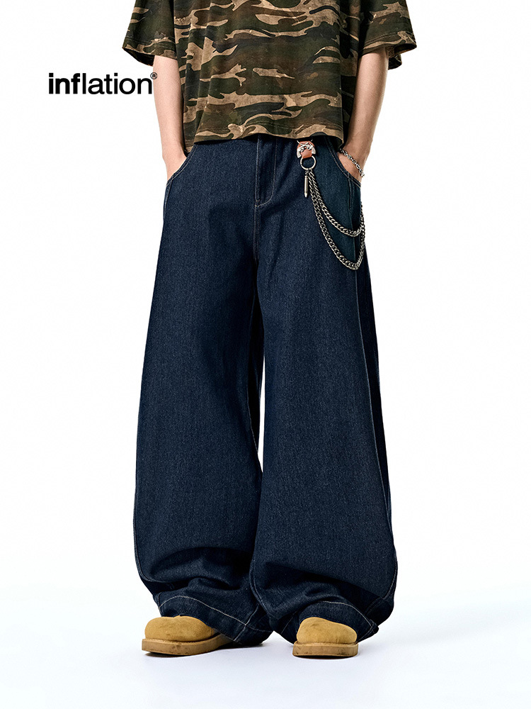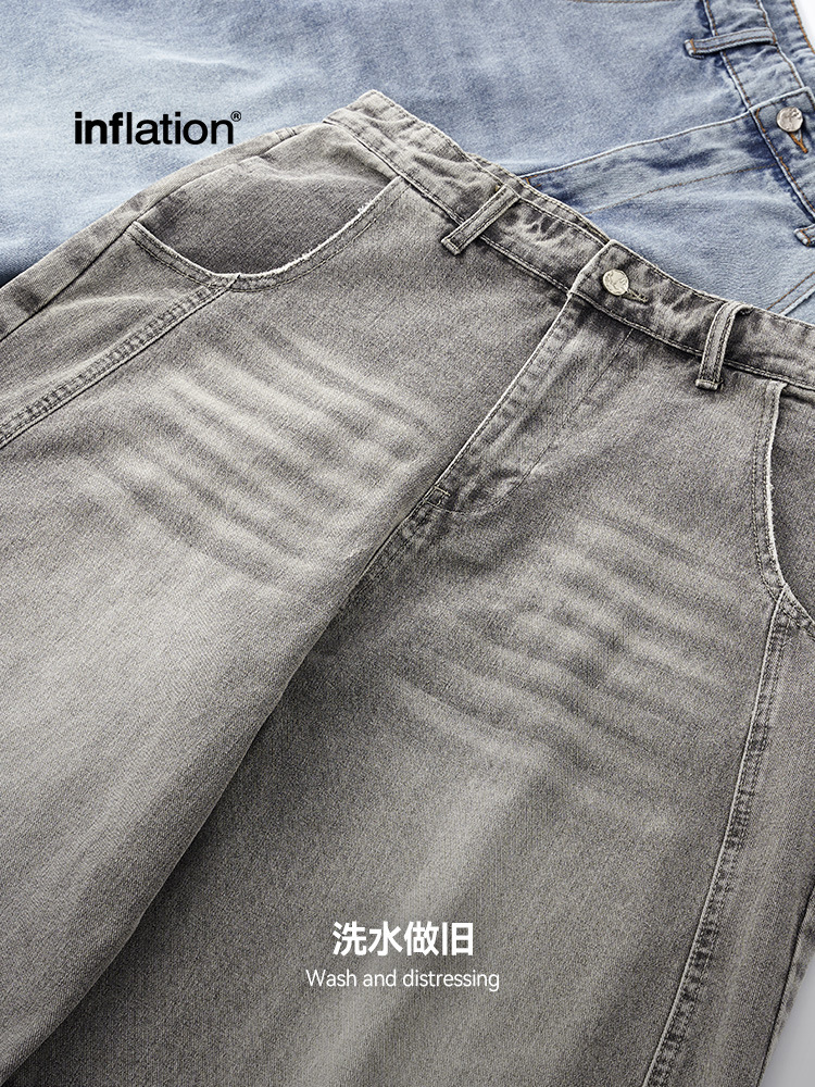 Мужская одежда Jie Zhan | Свободные потертые джинсовые брюки-сабо, осенние новые американские уличные мешковатые широкие брюки с серпом, 25 осенних новых