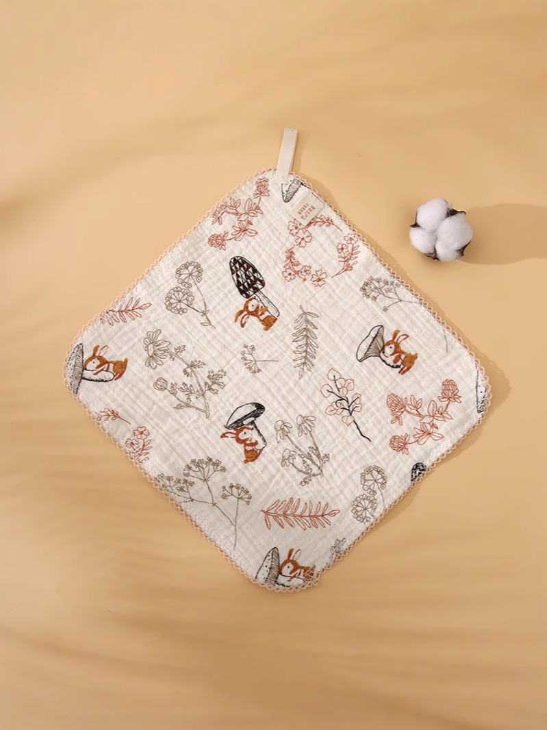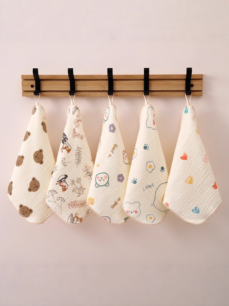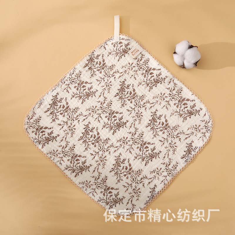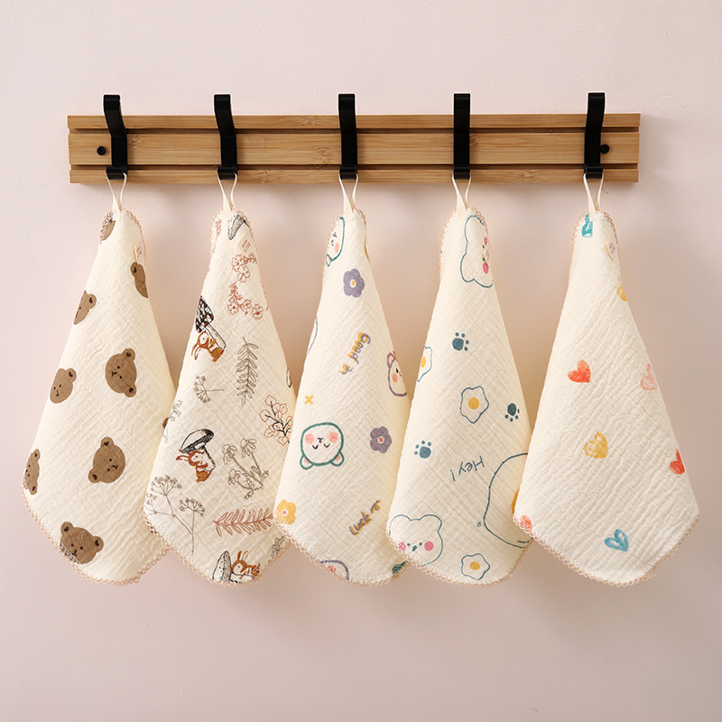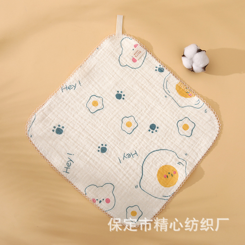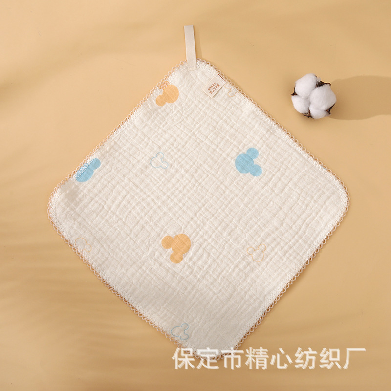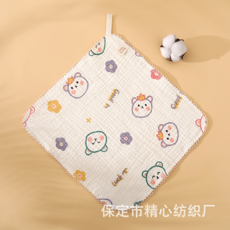 Четырехслойное детское маленькое полотенце с волнистыми краями из сахарной ваты, квадратное детское полотенце с креповым принтом для детского сада, размер 25*25.