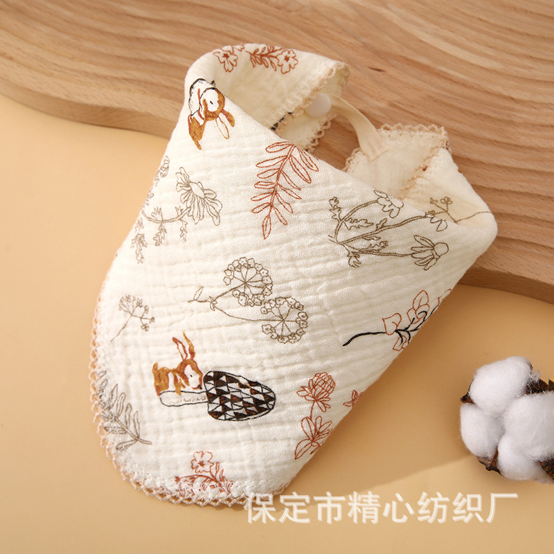 四层皱布方巾 多功能擦脸巾 口水巾 可钉扣做三角巾