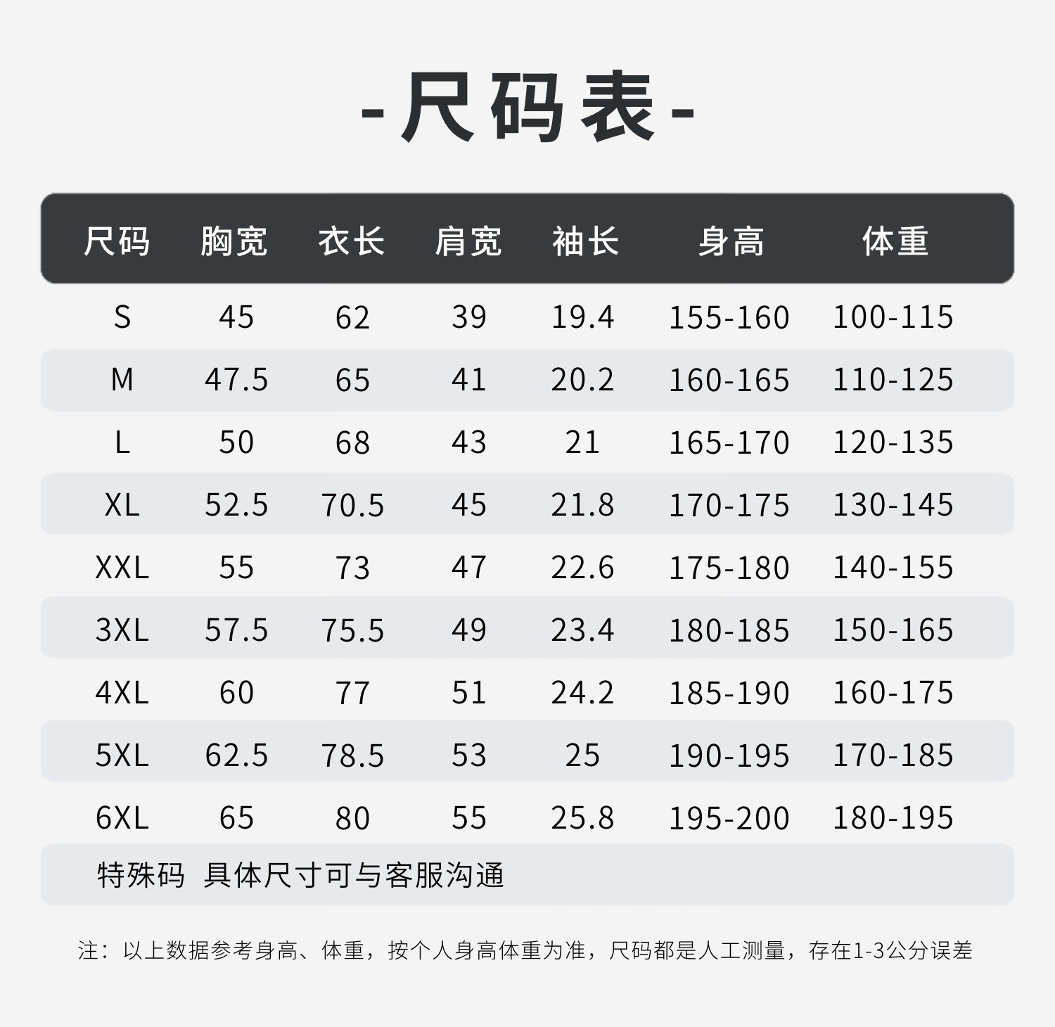 S; M; L; XL; 2XL; 3XL; 4XL; 5XL; 6XL