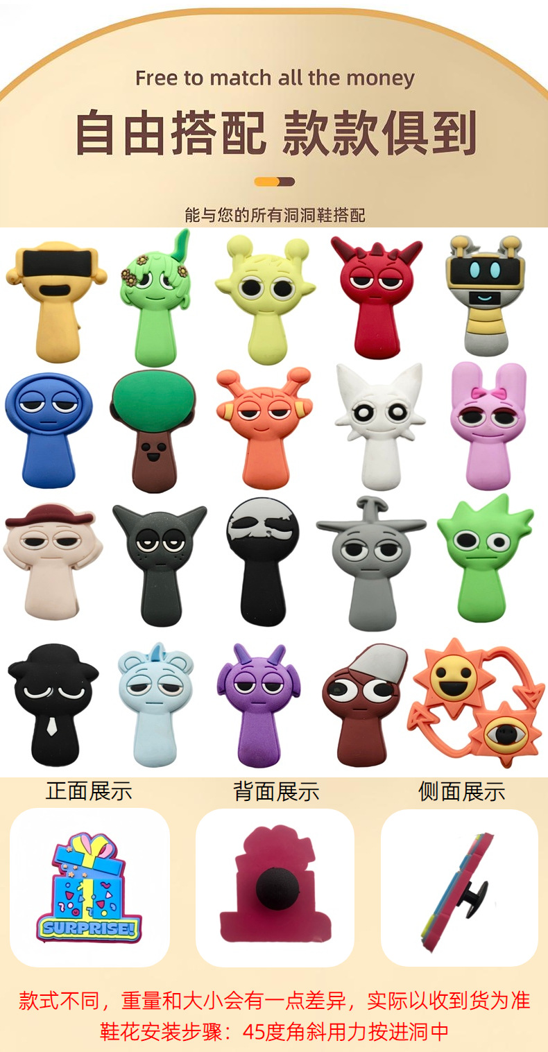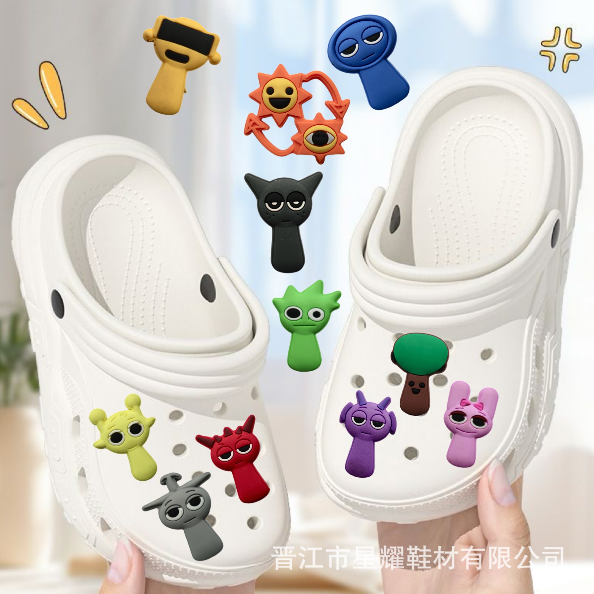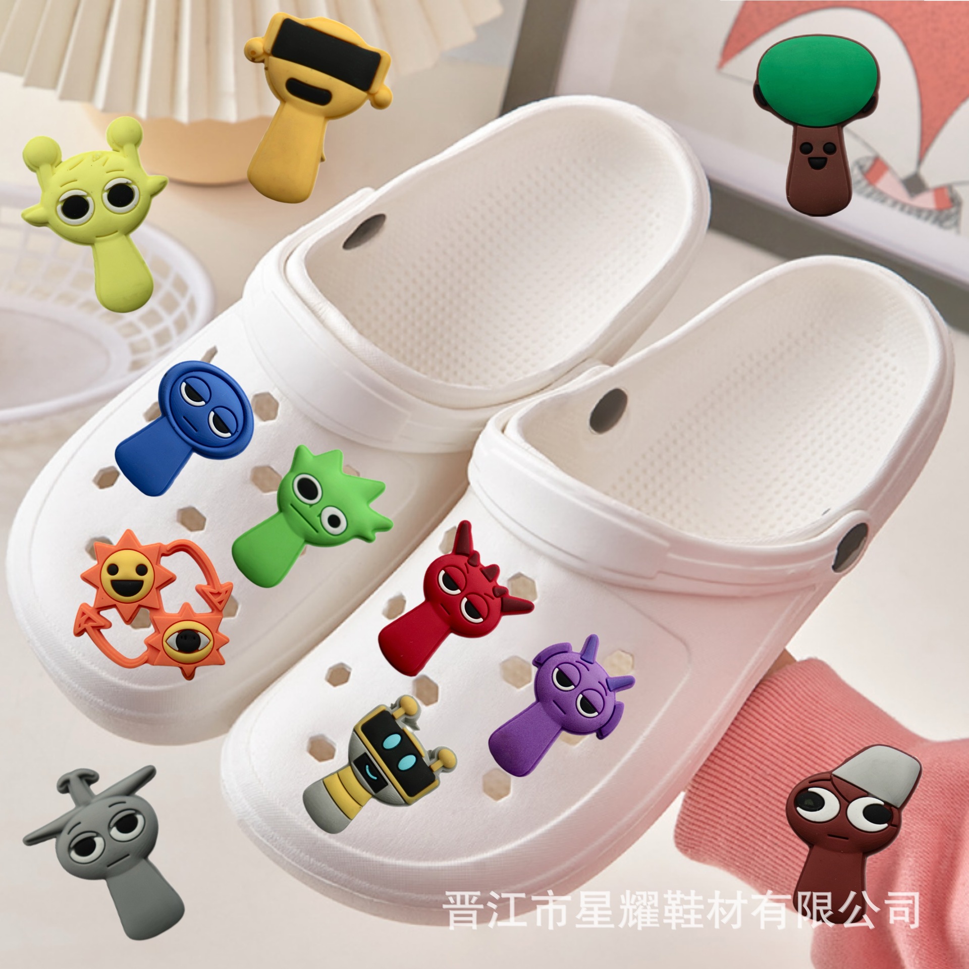 Популярные декоративные шнурки-зажимы для обуви в виде мультяшных персонажей из ПВХ, мягкие резиновые аксессуары, в наличии
