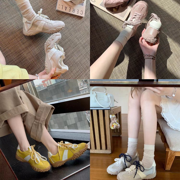 Женские кроссовки в стиле Grape Mom, маленький размер, увеличивающие рост, тренировочные кроссовки Agande, женские кроссовки на толстой подошве из натуральной кожи, белые туфли.