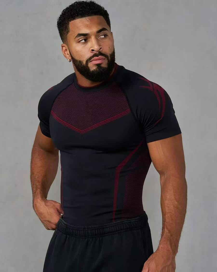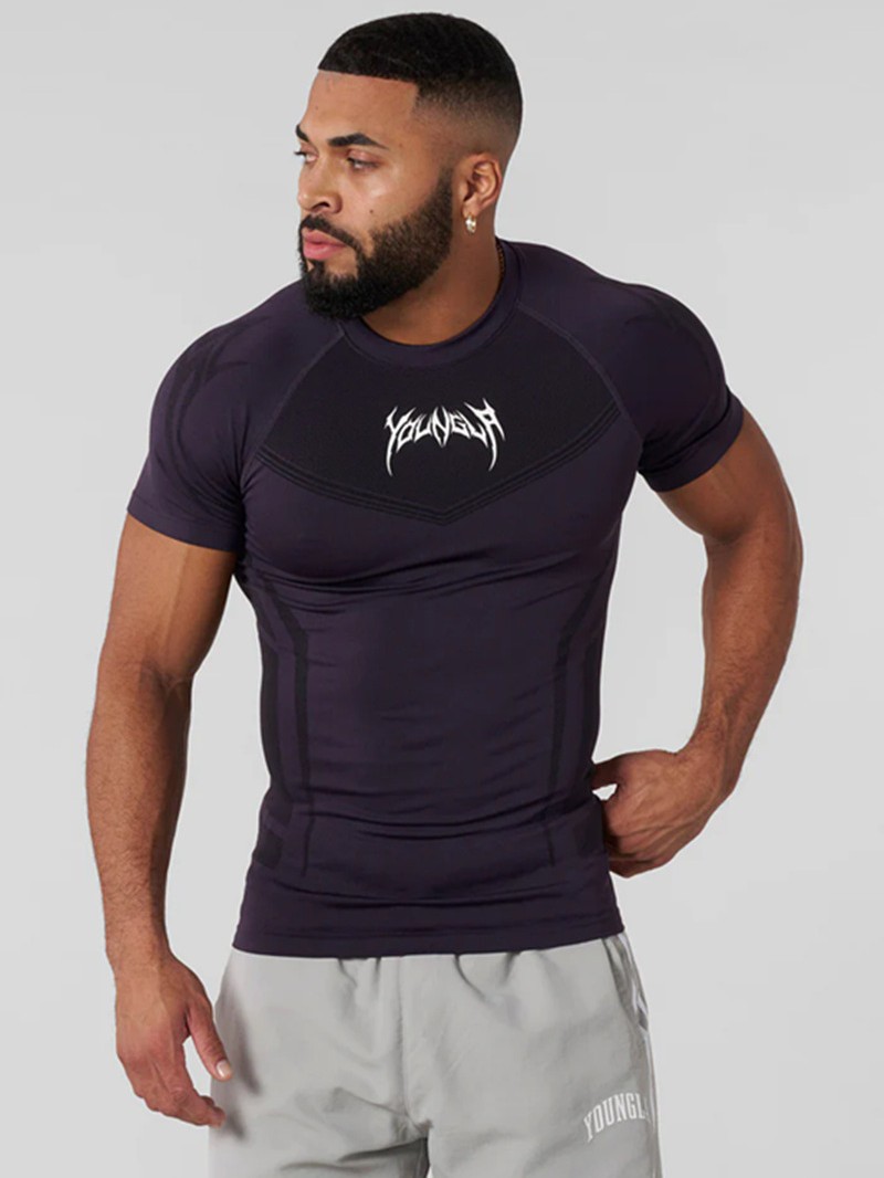 YOUNGLA Американские летние мужские высокие эластические футболки для бегунов Спортивный фитнес-бег Тренировка для быстрого высыхания с короткими рукавами