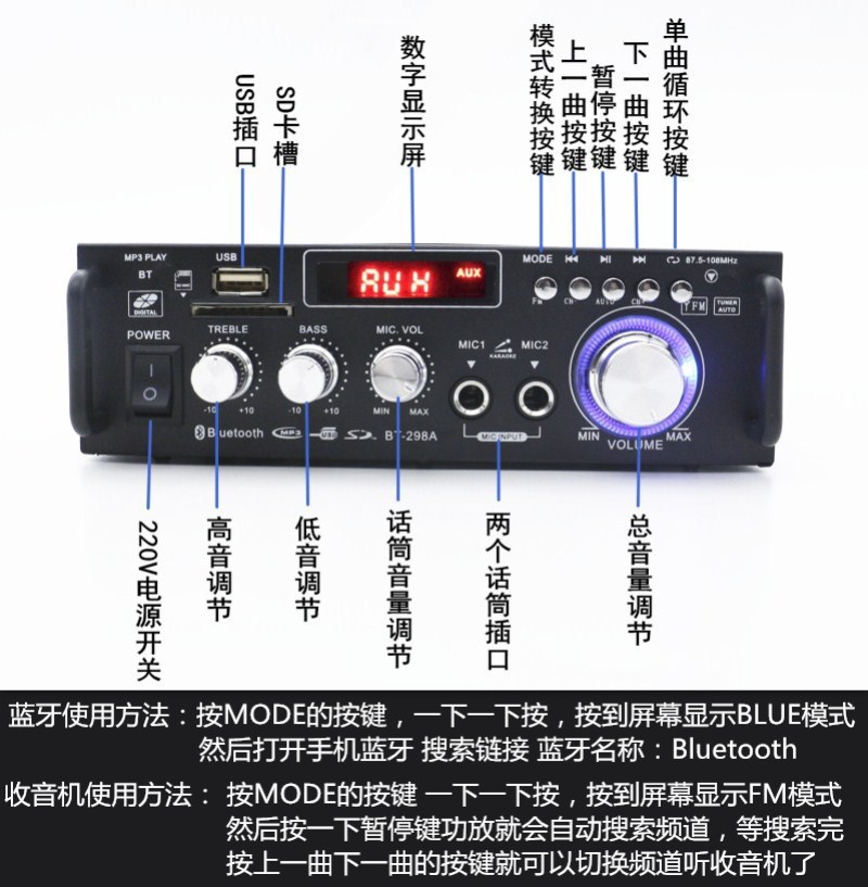 BT298A Малый усилитель разъем карты U диск аудио DC 12V220V Bluetooth небольшой усилитель