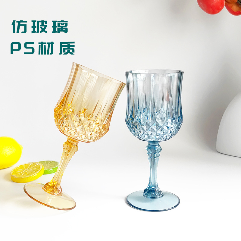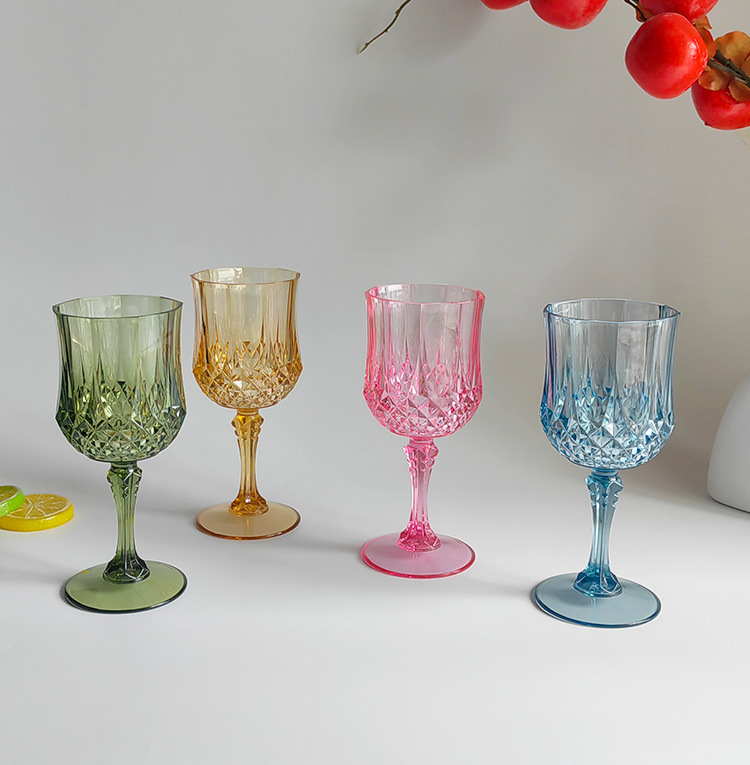PS бокал для красного вина, пластиковый бокал для шампанского, ретро коктейльная чашка с ромбовидным узором, кубок, имитация стекла, красочный бокал для вина